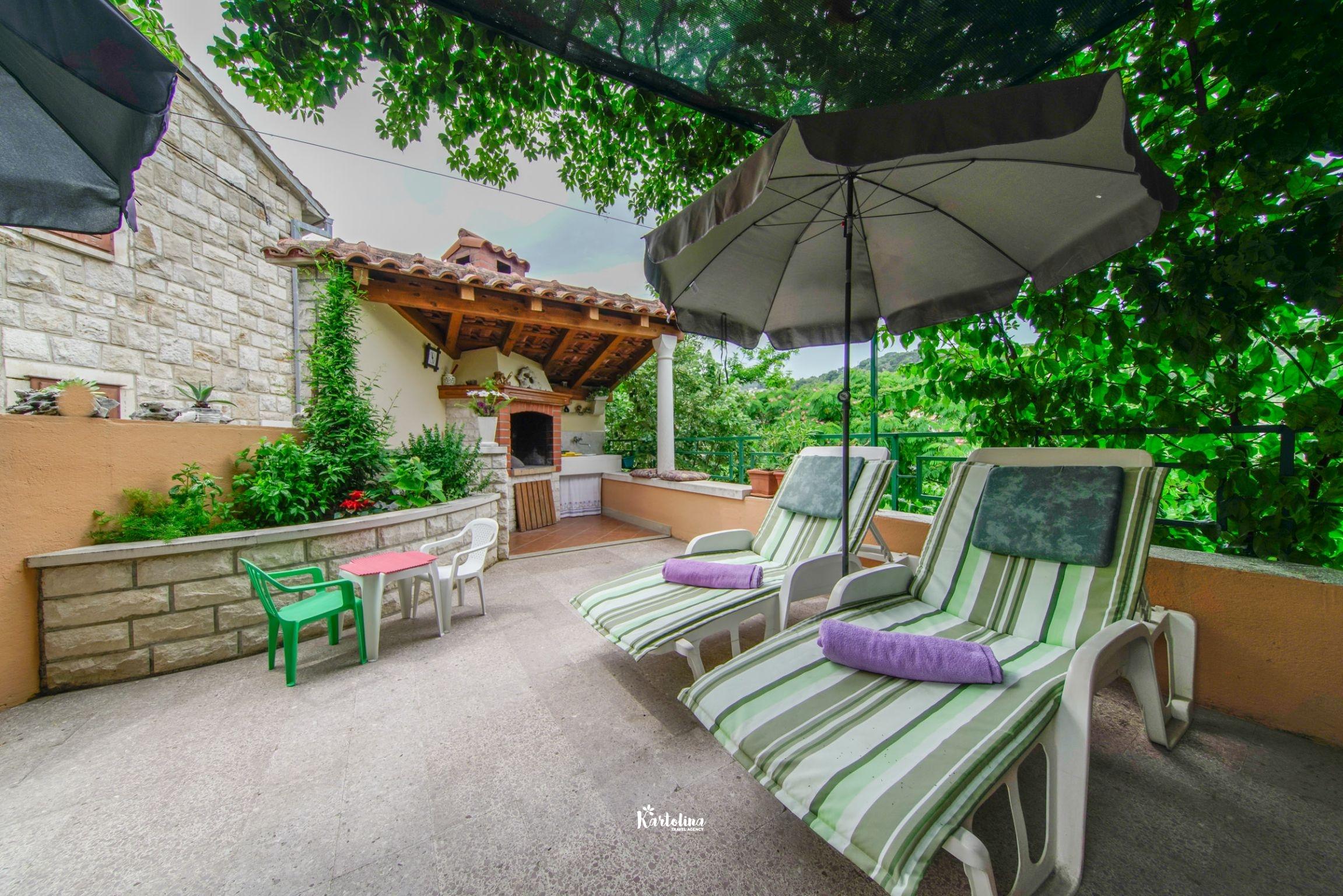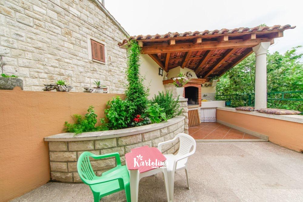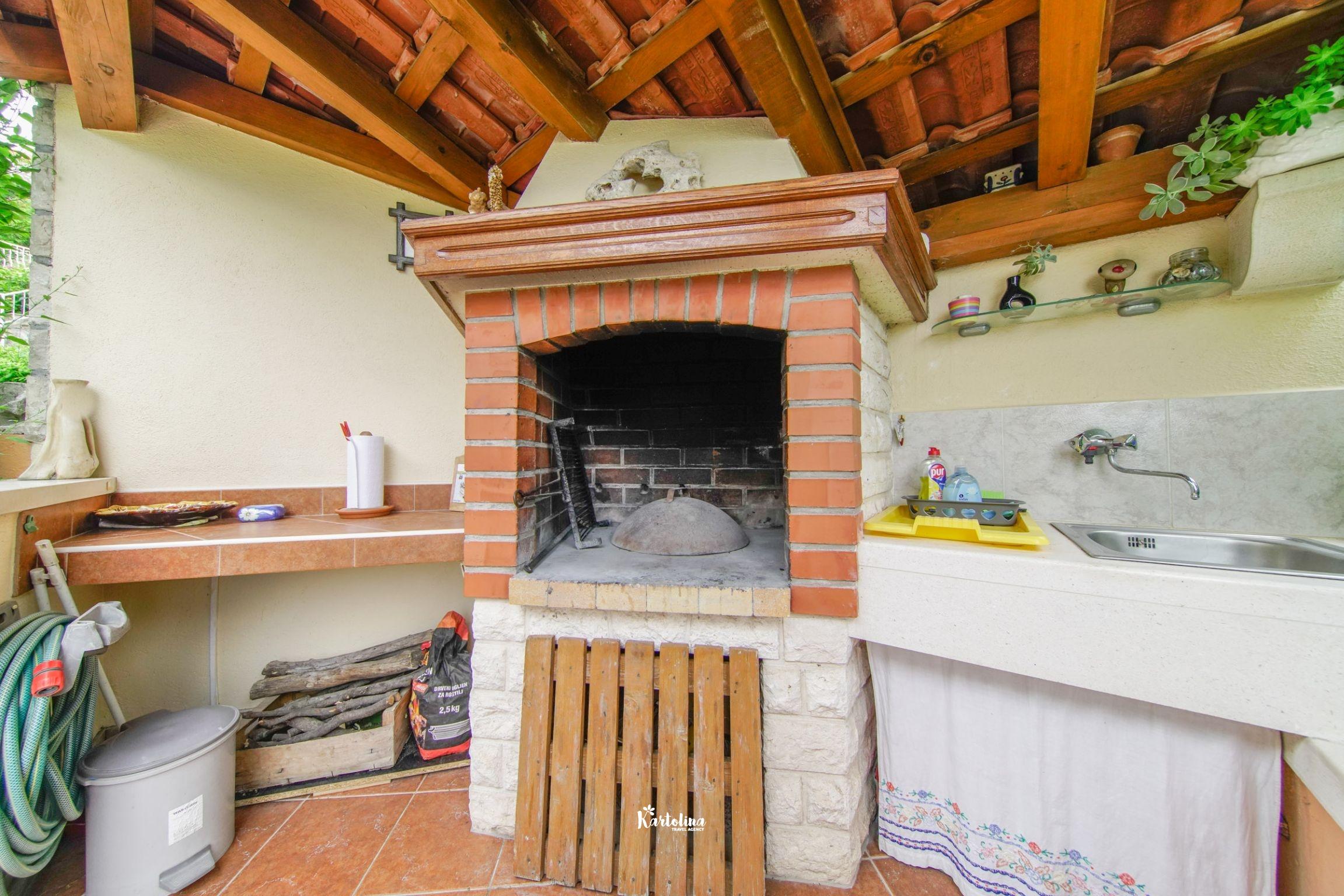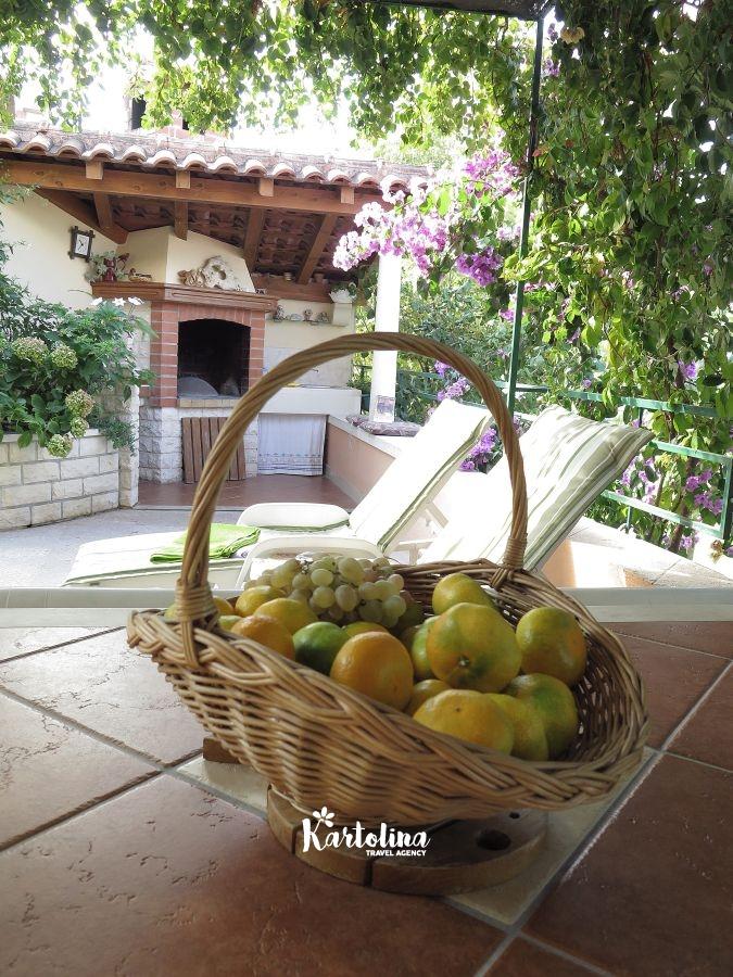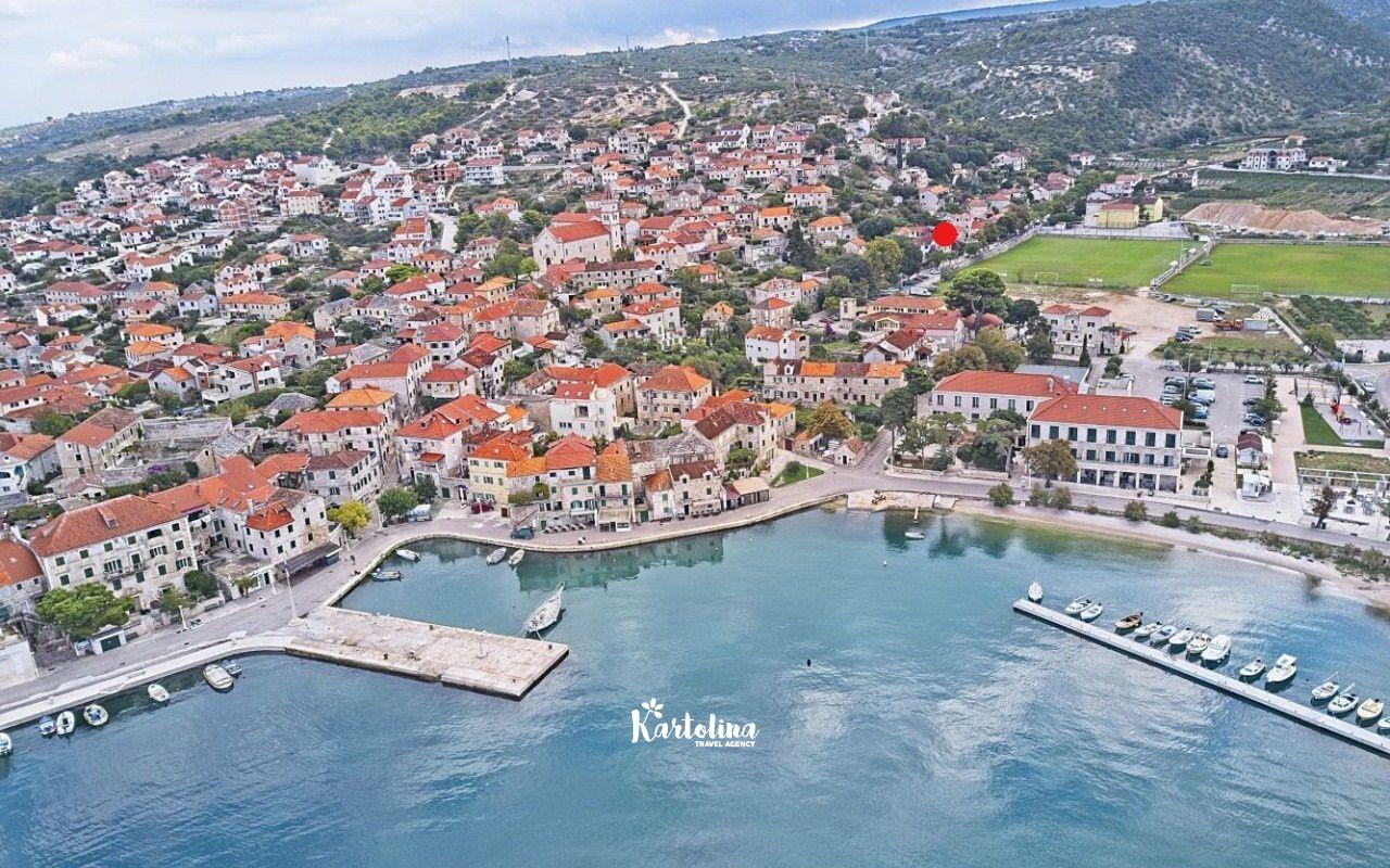 Kuća se nalazi u jednosmjernoj ulici u starom dijelu mjesta. Nasuprot kuće su održavani nogometni tereni a poseban ugođaj u ljetnim danima stvara natkrivena terasa okružena cvijećem i raznim biljem. Na raspolaganju je vrtna garnitura, komin, ležđaljke i kutak za djecu.