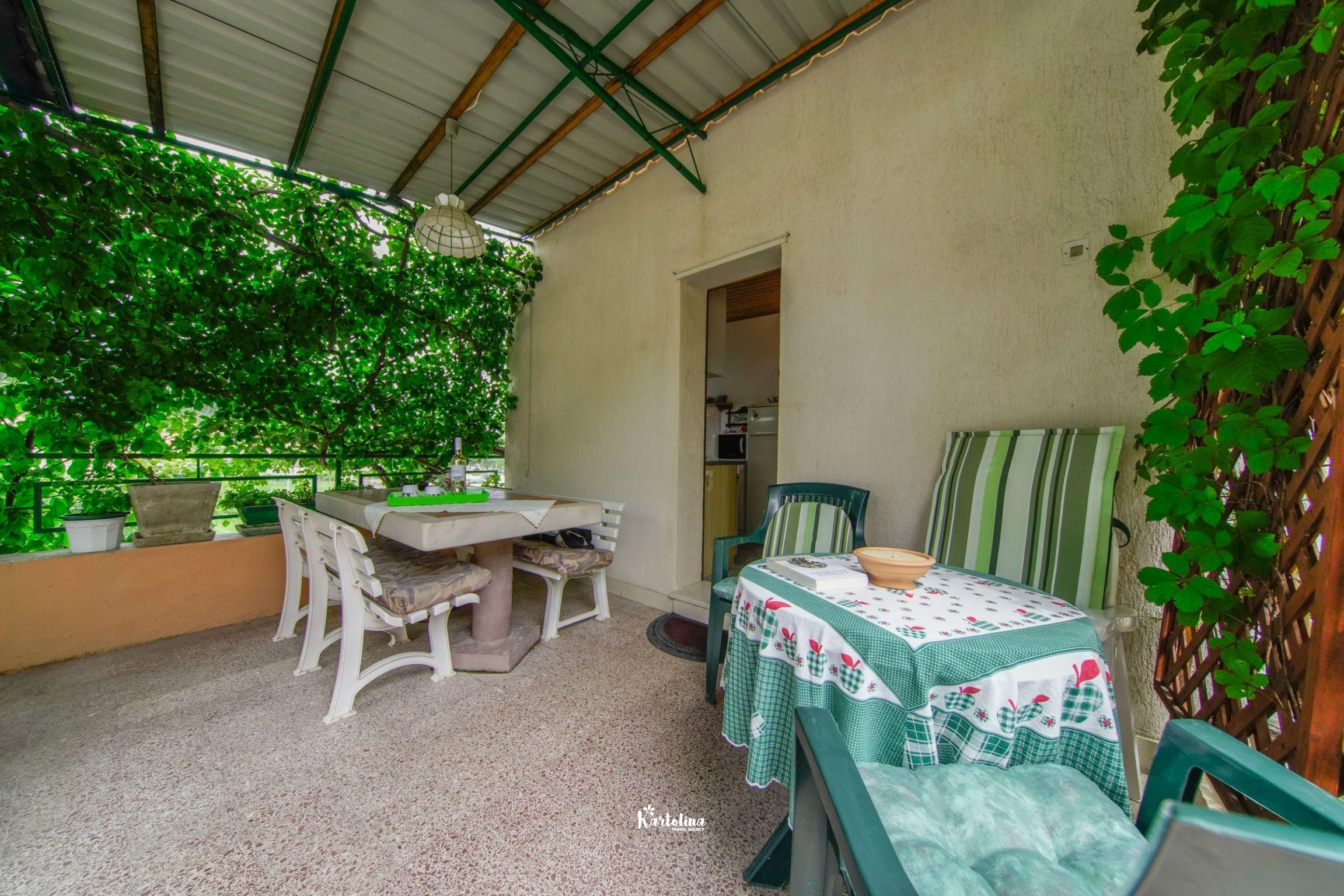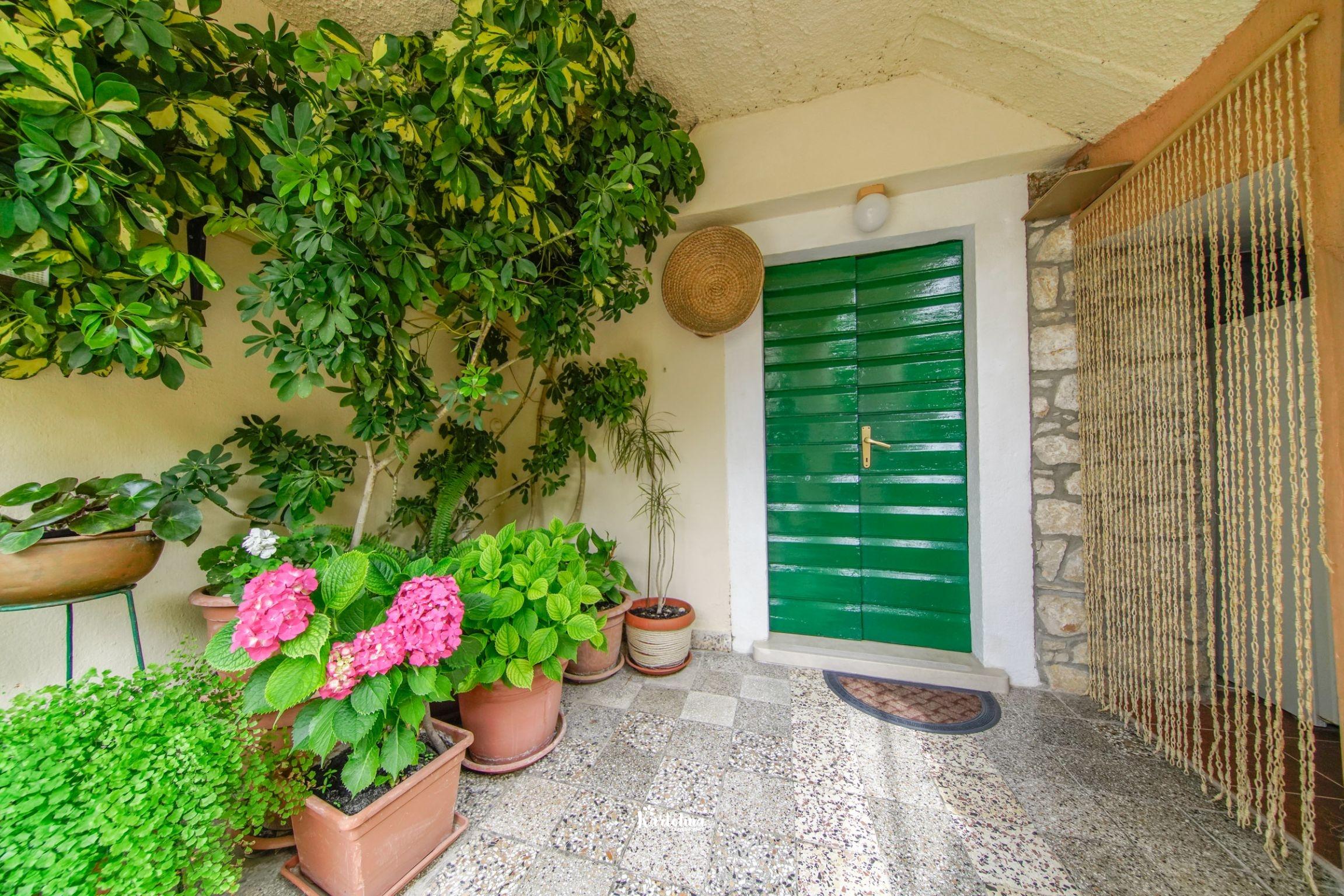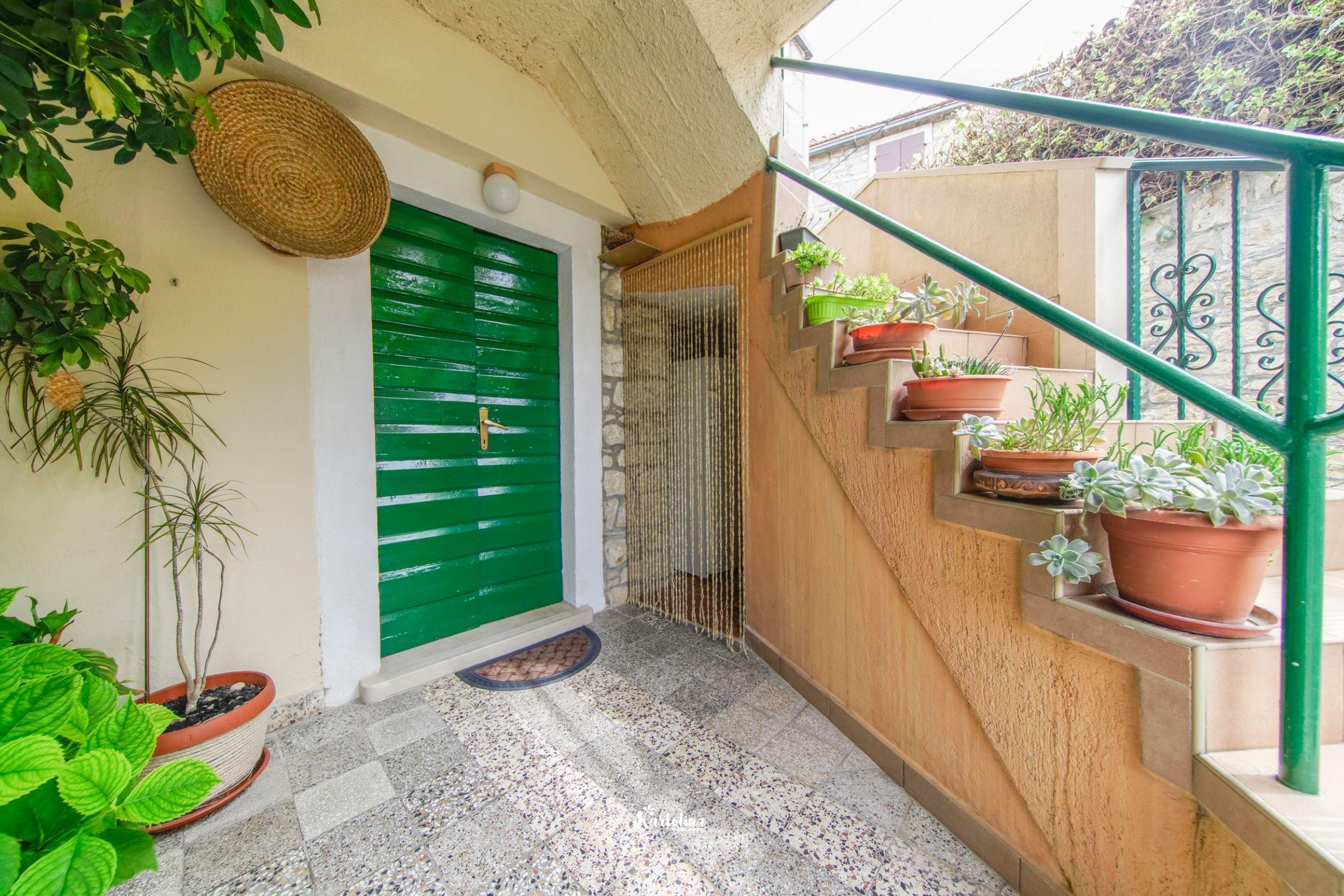 Kuća se nalazi u jednosmjernoj ulici u starom dijelu mjesta. Nasuprot kuće su održavani nogometni tereni a poseban ugođaj u ljetnim danima stvara natkrivena terasa okružena cvijećem i raznim biljem. Na raspolaganju je vrtna garnitura, komin, ležđaljke i kutak za djecu.