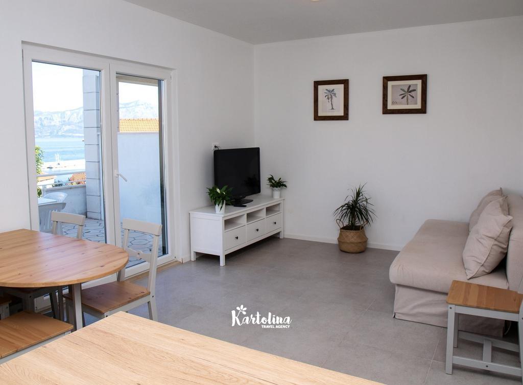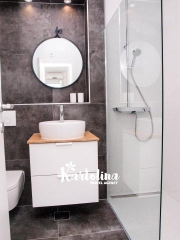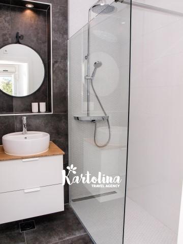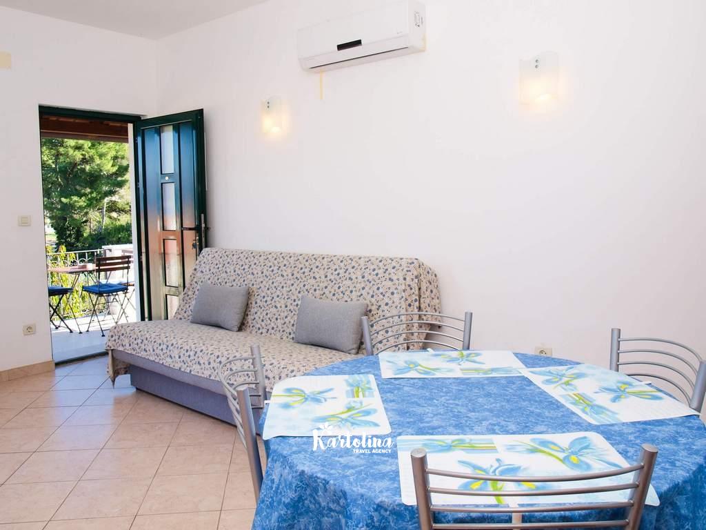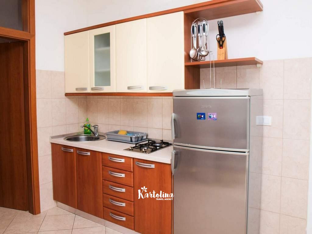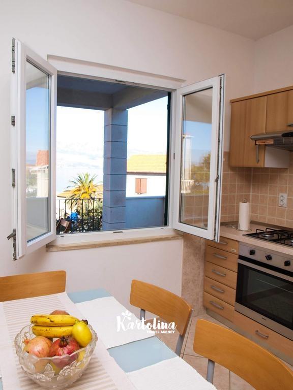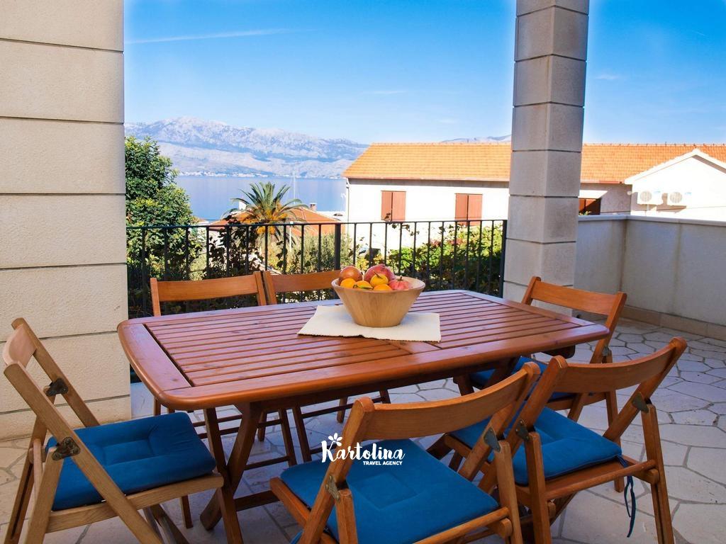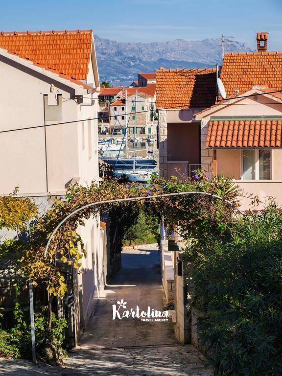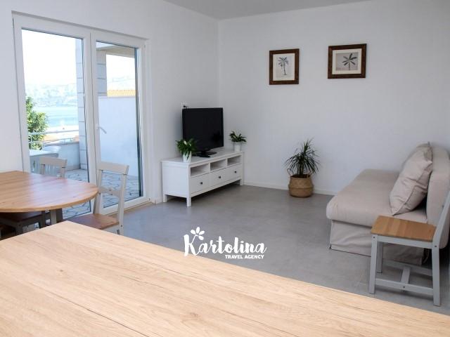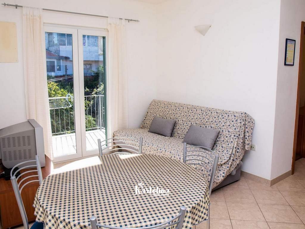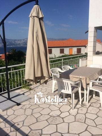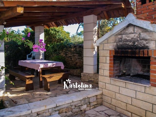 Kuća je smještena u centru mjesta udaljena od mora i plaže oko 50 m. Iznajmljuju se četiri potpuno opremljena apartmana i svaki apartman ima terasu s pogledom na more.Kuća je okružena okućnicom i dvorištem u kojem se nalazi roštilj i privatni parking.
