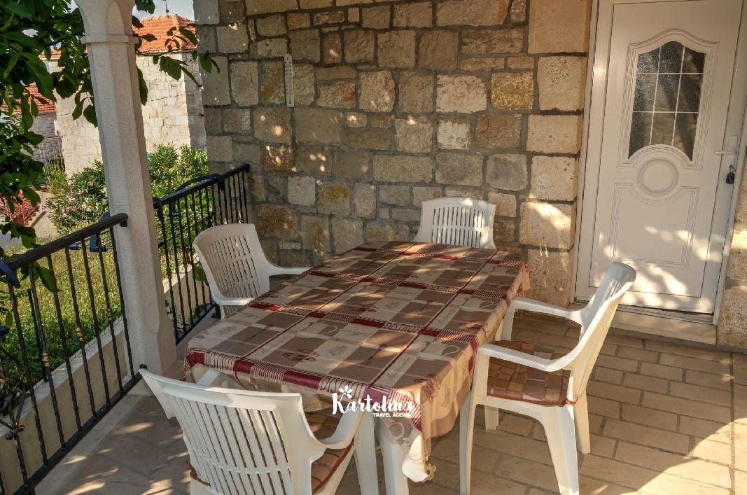 Ovaj prostrani trosobni apartman je smješten u centru Postira na prvom katu obiteljske kuće. Udaljenost od najbliže plaže je manja od 70 m, a od slijedeće oko 100 m. Najbliža trgovina i restoran su udaljeni oko 100 m od apartmana.