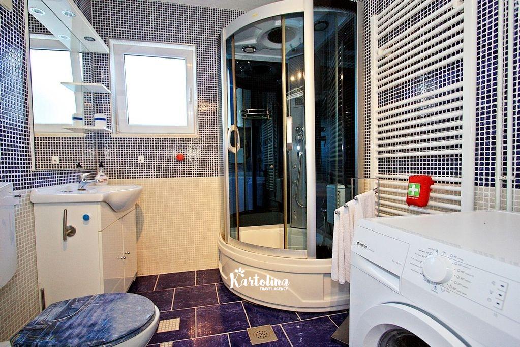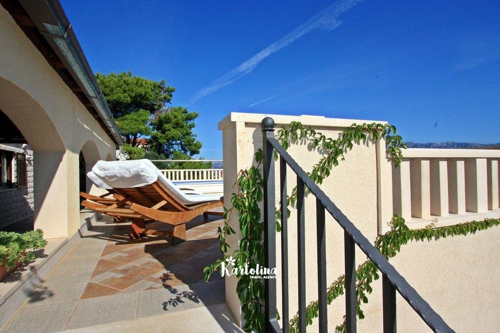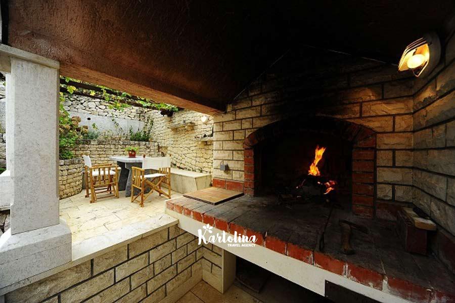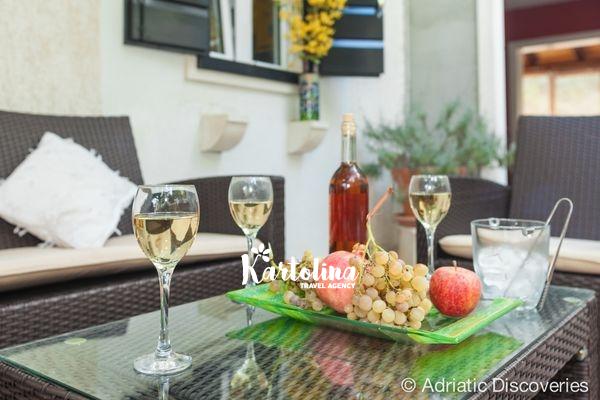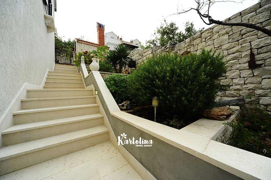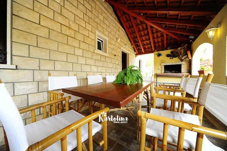 Ova vila može ugostiti 10 odraslih osoba, ili više obitelji s djecom. Nalazi se na idealnoj i mirnoj lokaciji, a pruža sve udobnosti koje moderni gosti mogu očekivati. Vila ima nekoliko terasa, od kojih su neke natkrivene hladovinom, a druge otvorene suncu.