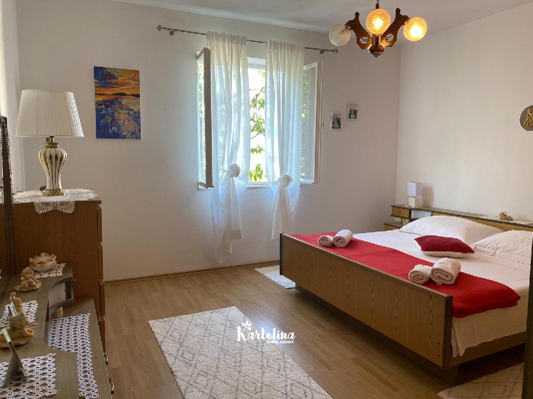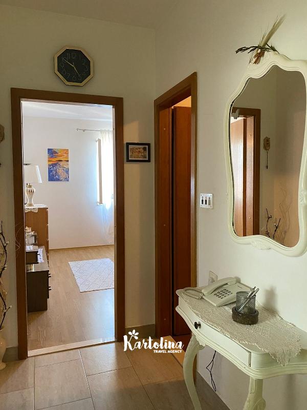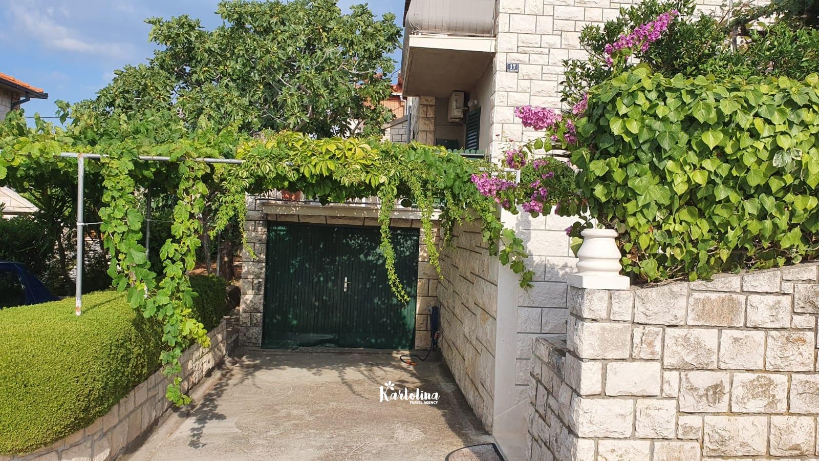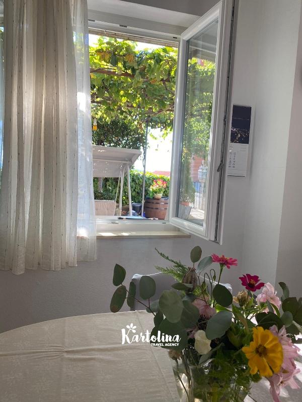 Apartman je smješten u prizemlju obiteljske kuće. Nalazi se u atraktivnom dijelu mjesta okružen vrtom i dvorištem. Centar je udaljen oko 500 m, najbliža šljunčana plaža oko 300 m.