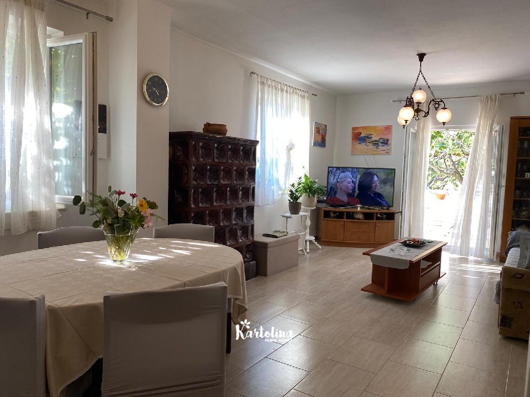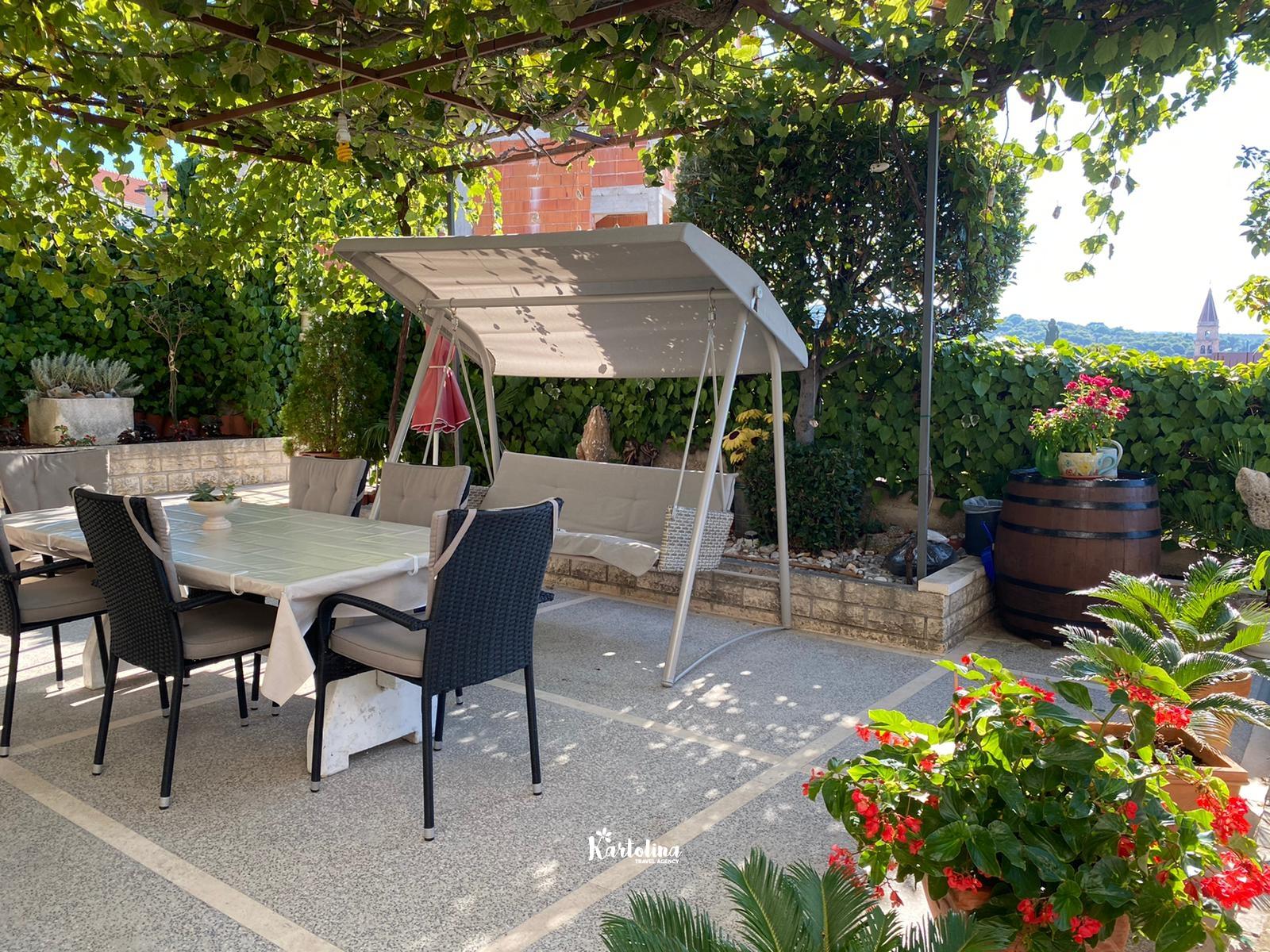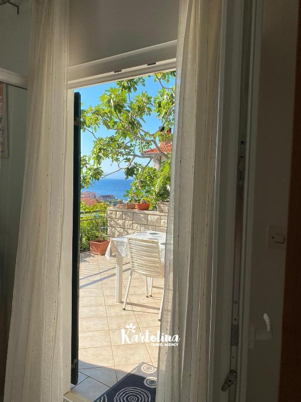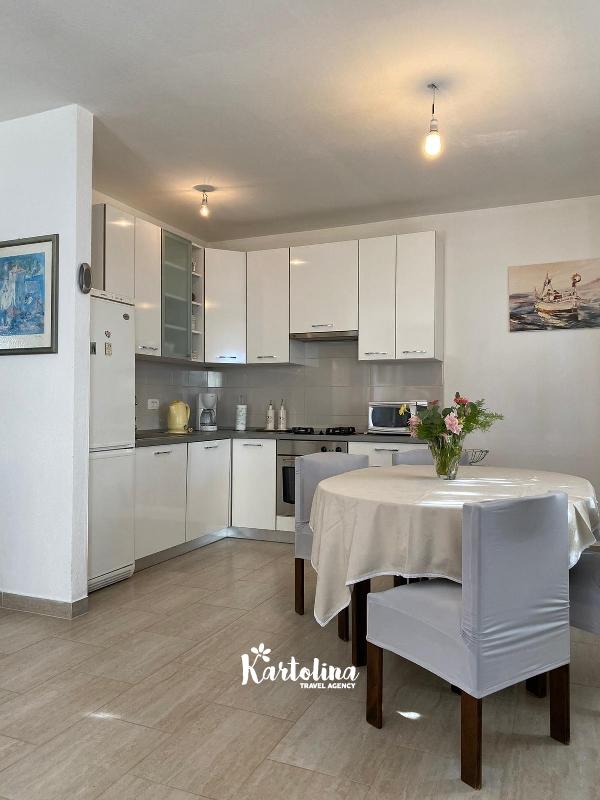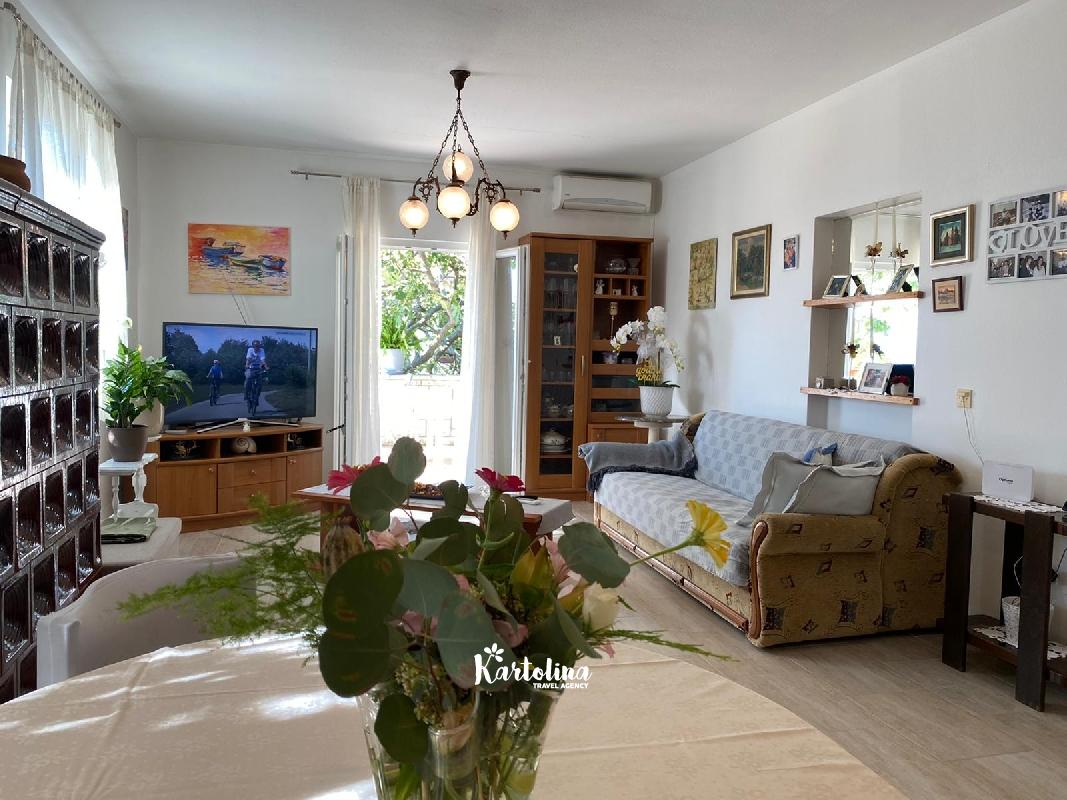 Apartman je smješten u prizemlju obiteljske kuće. Nalazi se u atraktivnom dijelu mjesta okružen vrtom i dvorištem. Centar je udaljen oko 500 m, najbliža šljunčana plaža oko 300 m.