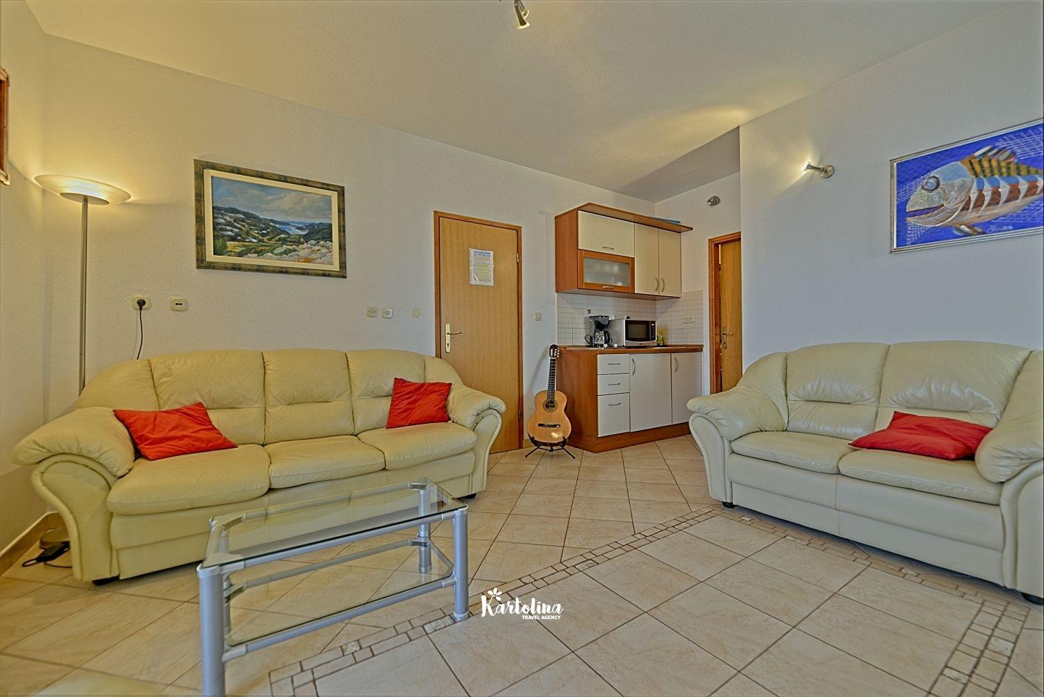 Svi apartmani su potpuno opremljeni i imaju poseban ulaz i terasu s pogledom na more. Ispred kuće dostupan je privatni parking a u dvorištu roštilj.