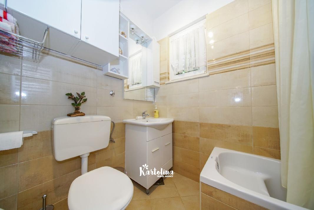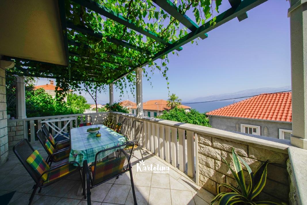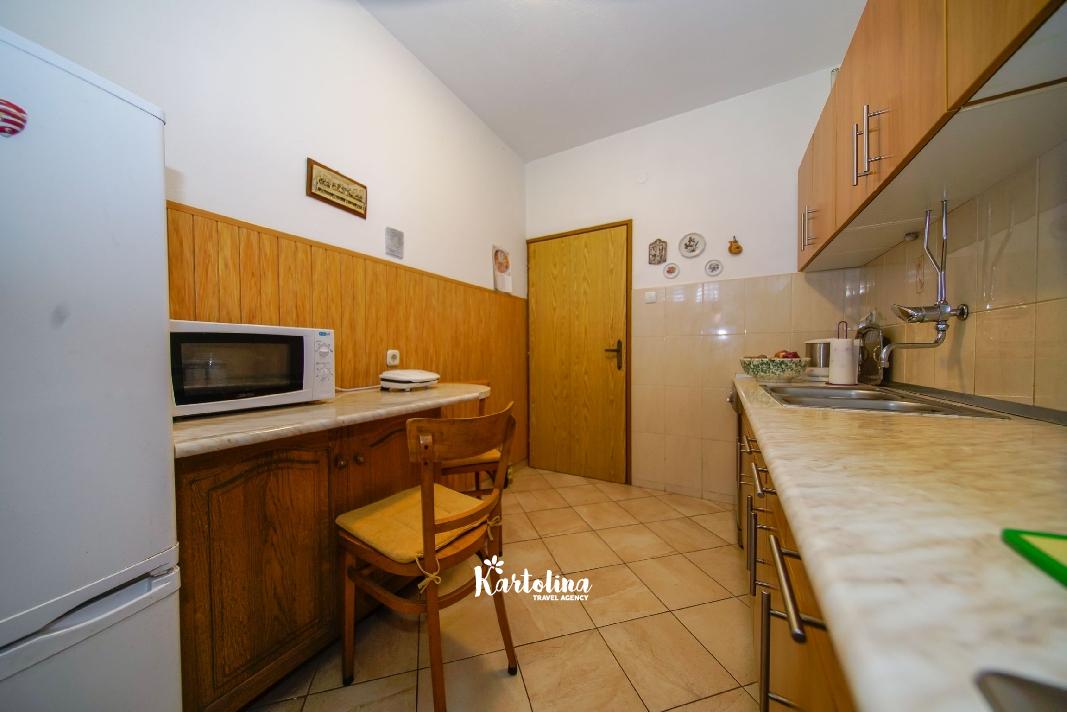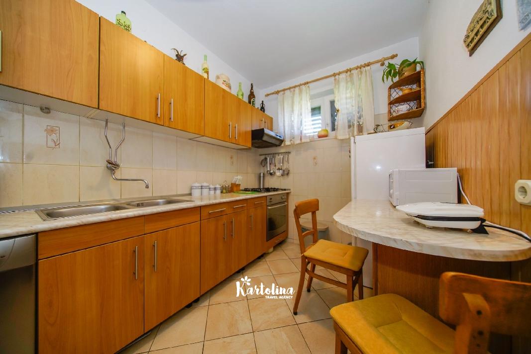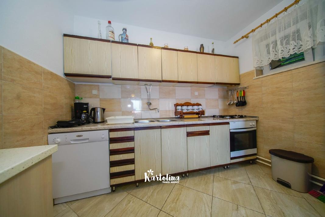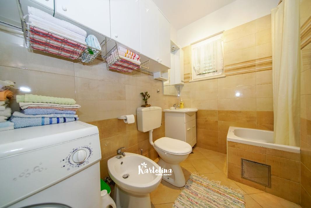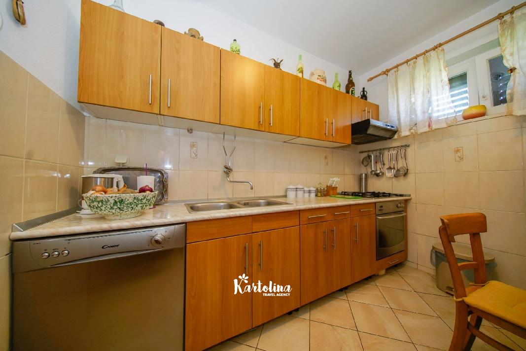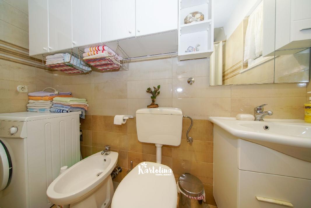 Apartmani su smješteni u obiteljskoj kući udaljenoj od mora oko 80 m i nedaleko od dvije šljunčane plaže. Centar mjesta udaljen je oko 500 m.