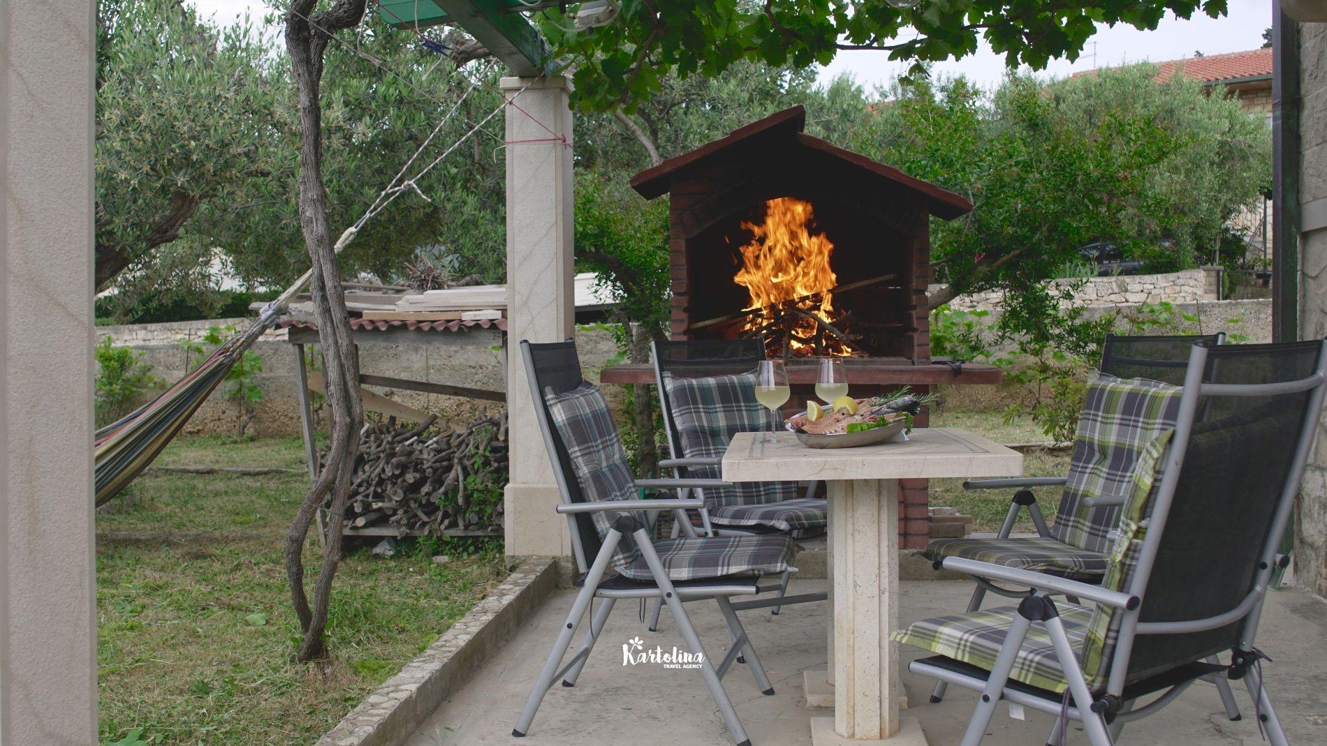 Kuća se nalazi u atraktivnom dijelu mjesta, blizu centra i plaže. Okružena je vrtom gdje se nalaze roštilj i parkirno mjesto. More je udaljeno svega 80 m, centar oko 50 m. Kućni ljubimci su dobrodošli uz doodatnu nadoplatu, posteljina i ručnici su uključeni u cijenu smještaja.