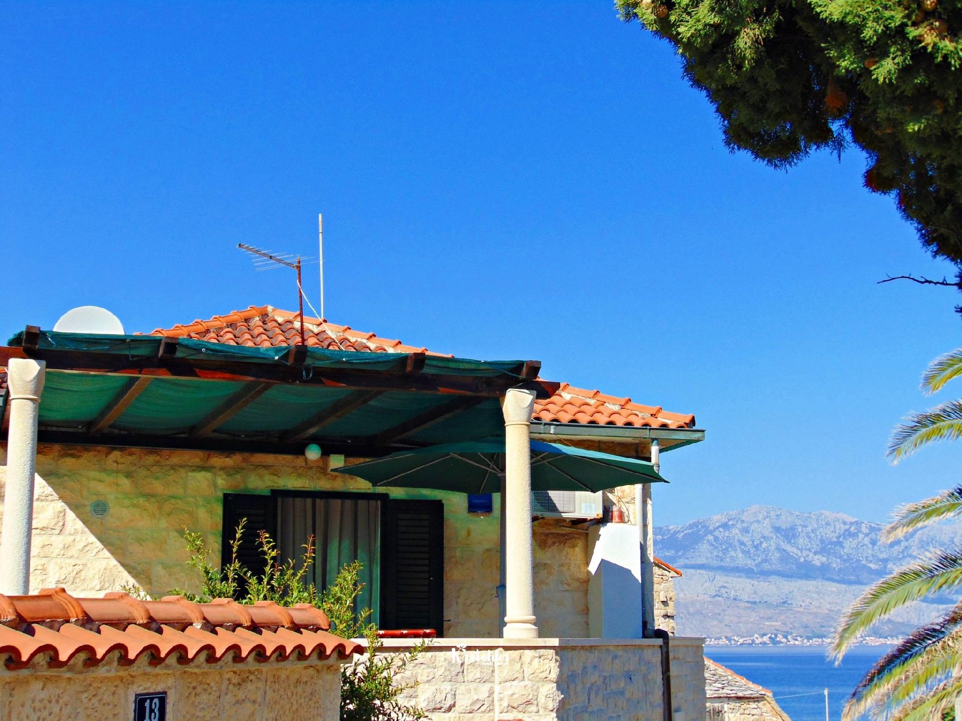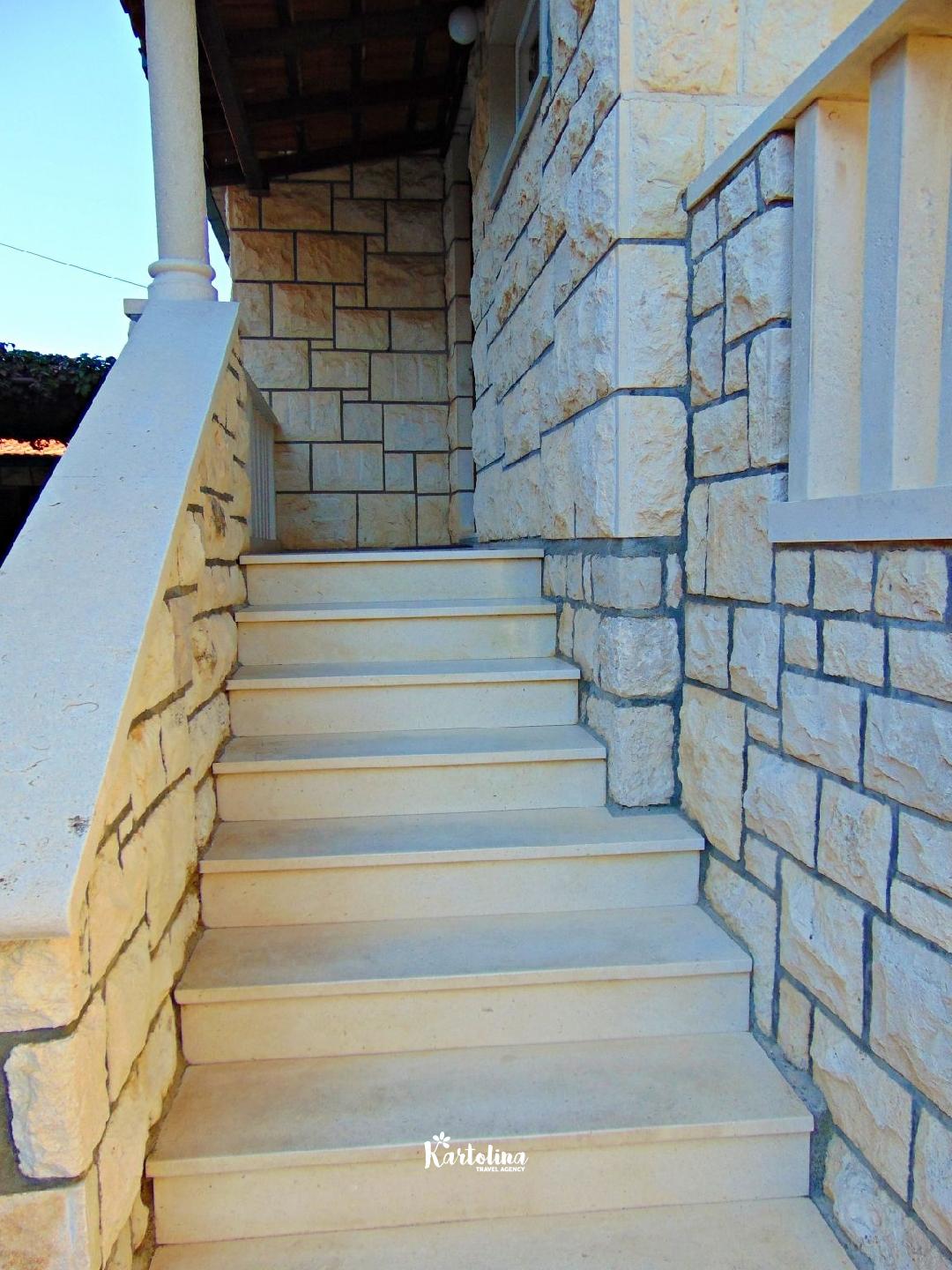 Ovaj prekrasan apartman je smješten na prvom katu tradicionalne kamene obiteljske kuće u Postirima i udaljen od plaže svega 20 m.