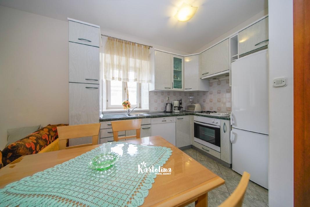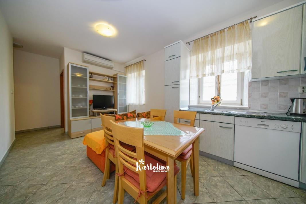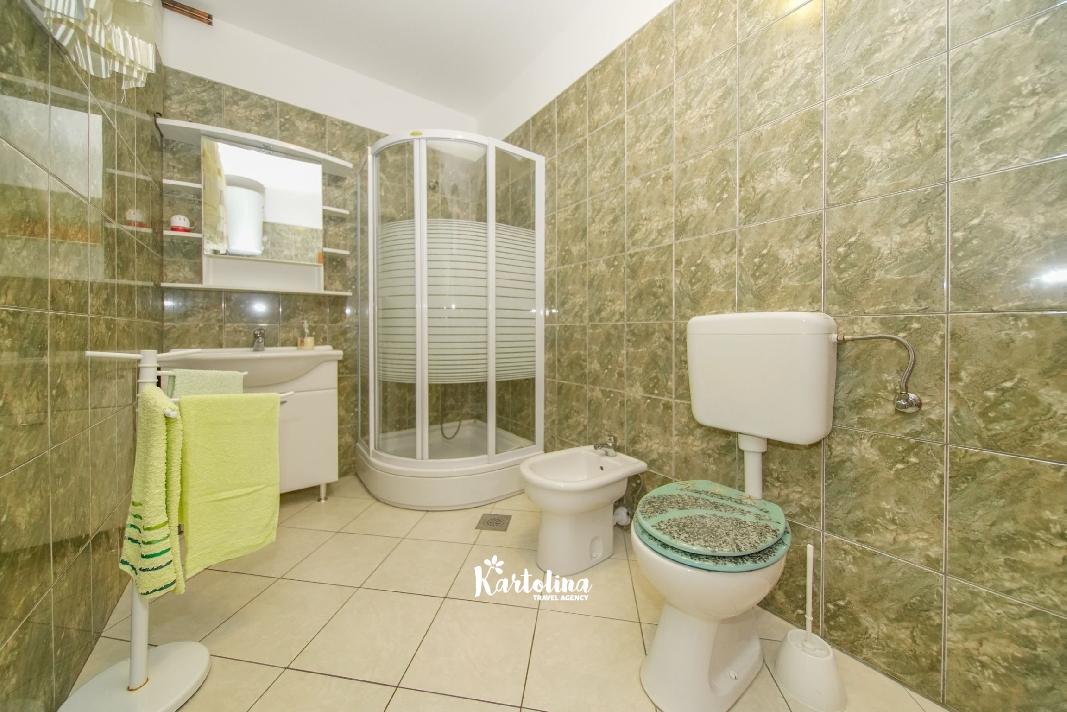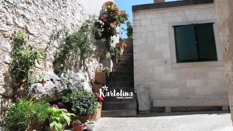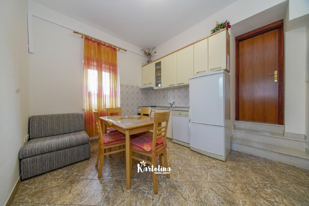U obiteljskoj kući dostupna su dva potpuno opremljena apartmana. Kuća je smještena u širem centru mjesta, u blizini crkve i nogometnih terena. Udaljenost od plaže iznosi 300 m a parking je moguć na besplatnom javnom parkiralištu udaljenom oko 150 m. Do objekta je moguć pristup automobilom. U dogovoru sa vlasnicima moguće je korištenje zatvorenog komina.