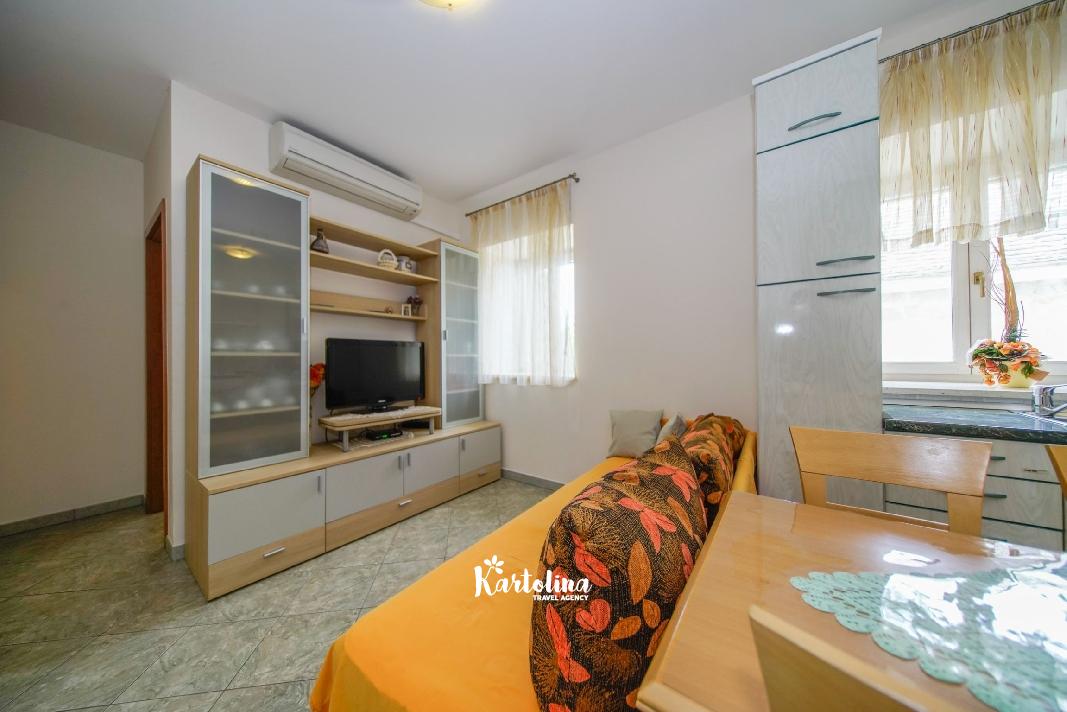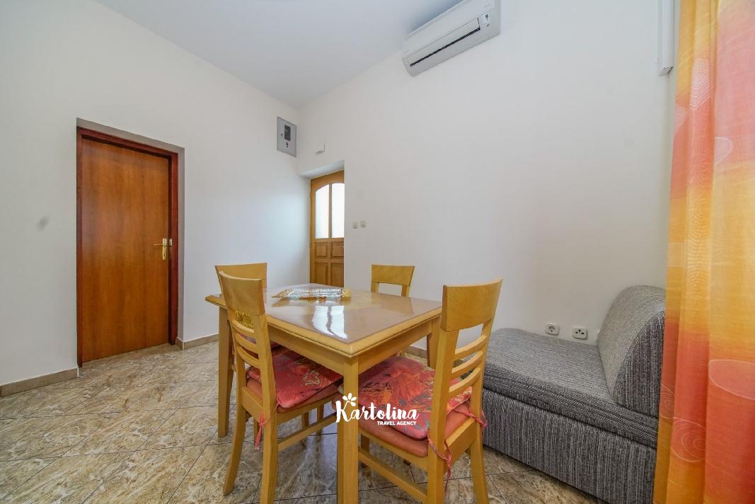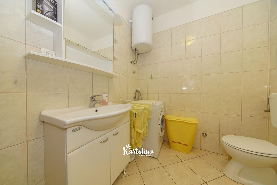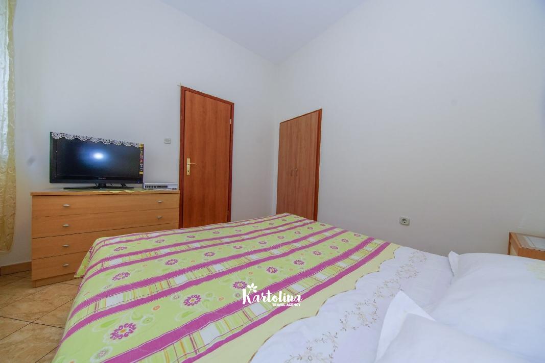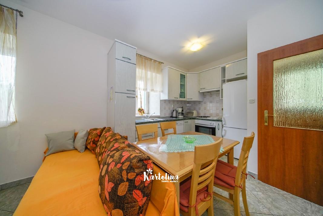 U obiteljskoj kući dostupna su dva potpuno opremljena apartmana. Kuća je smještena u širem centru mjesta, u blizini crkve i nogometnih terena. Udaljenost od plaže iznosi 300 m a parking je moguć na besplatnom javnom parkiralištu udaljenom oko 150 m. Do objekta je moguć pristup automobilom. U dogovoru sa vlasnicima moguće je korištenje zatvorenog komina.