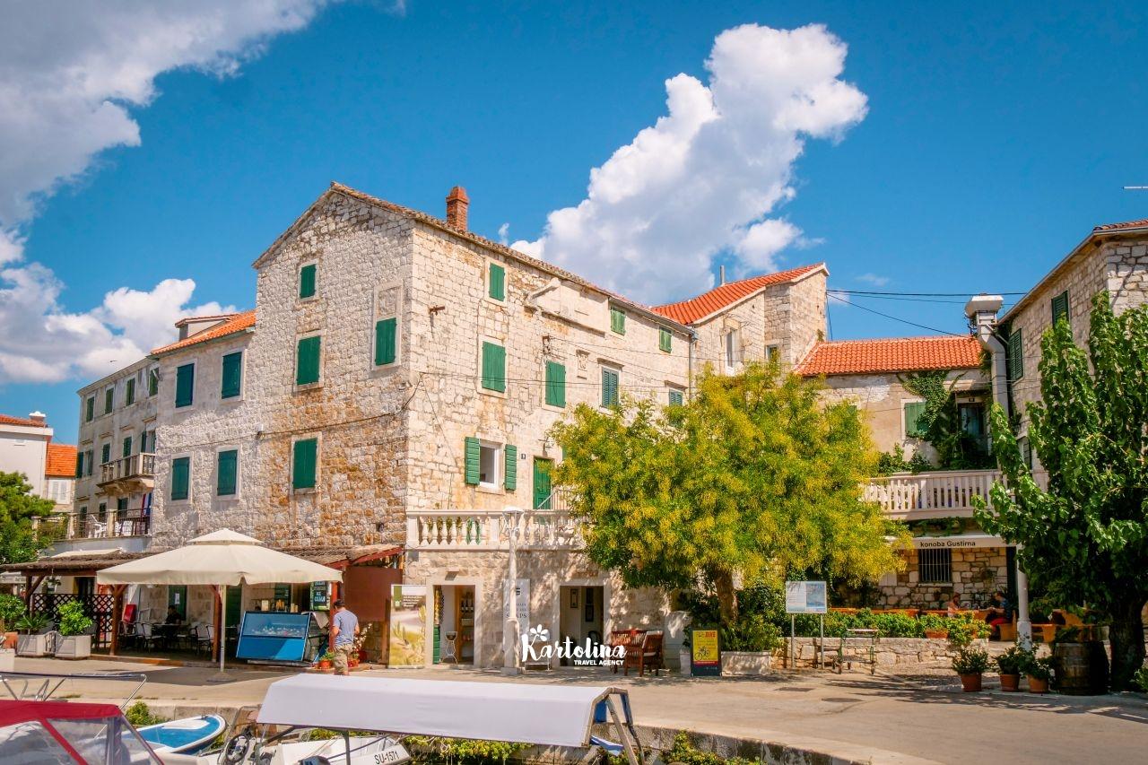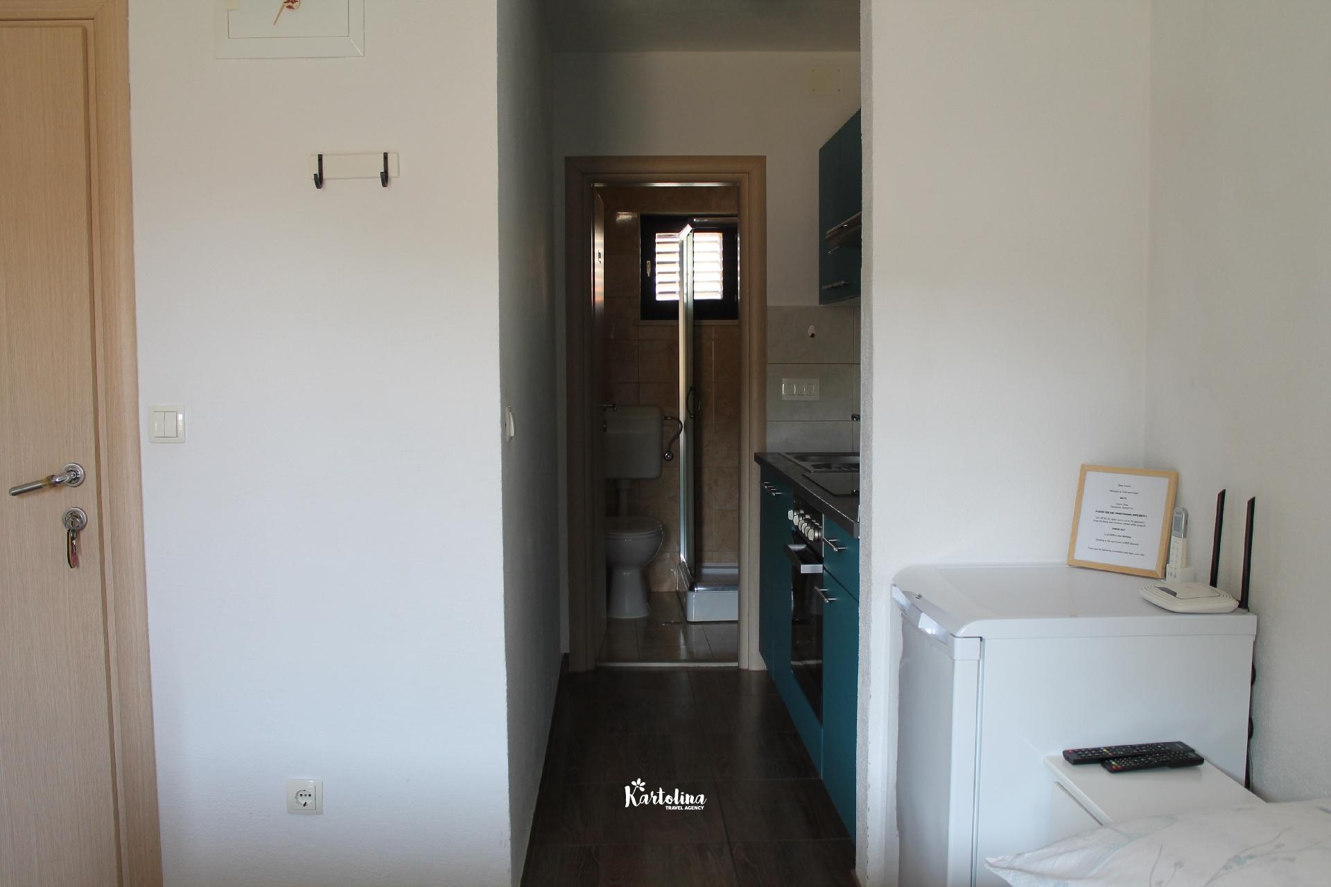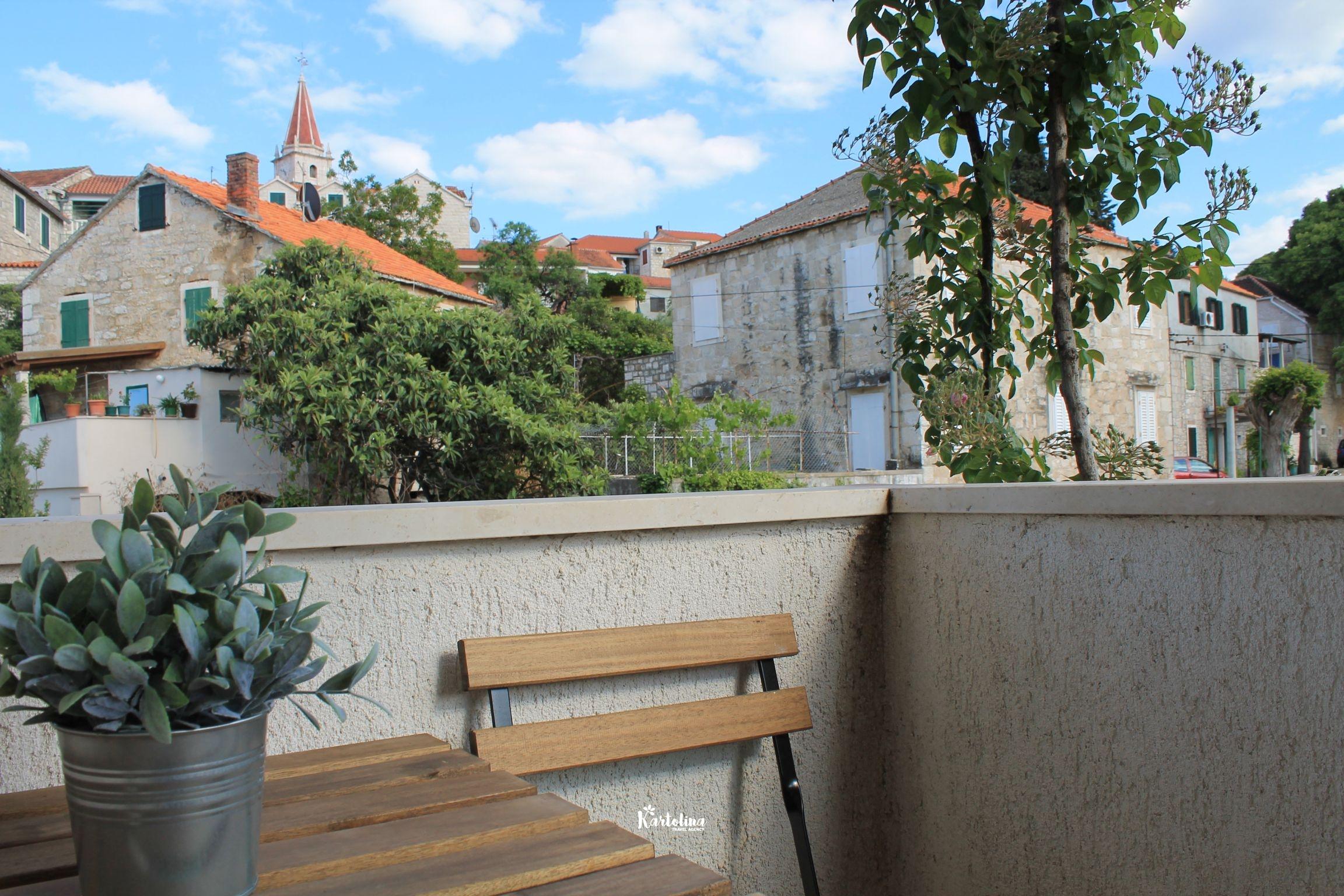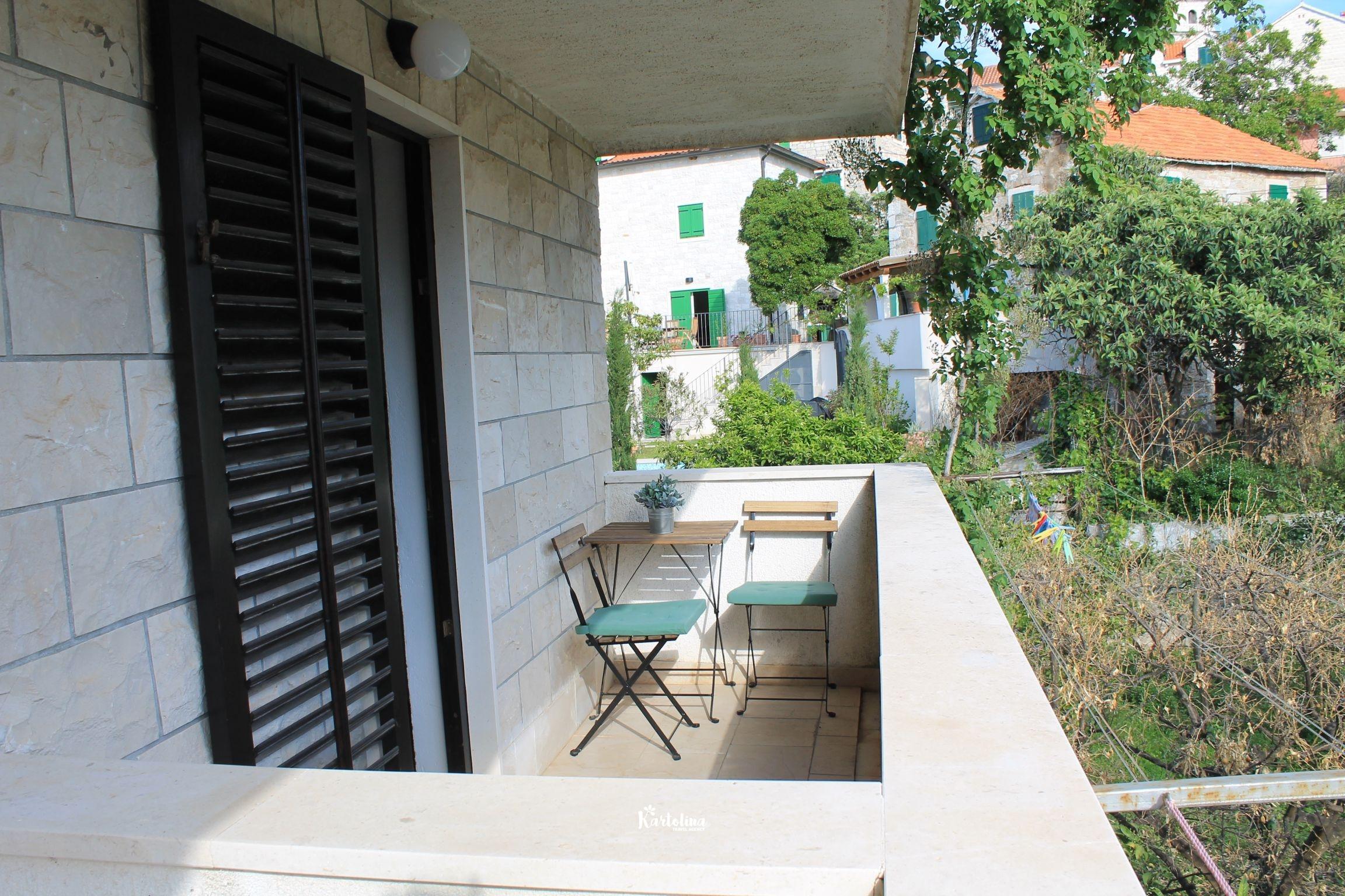 Ovaj simpatični studio apartman je smješten na prvom katu obiteljske kuće, samo nekoliko metara od centra Postira. Ima natkrivenu terasu s pogledom na stari dio mjesta i roštilj u dvorištu.
