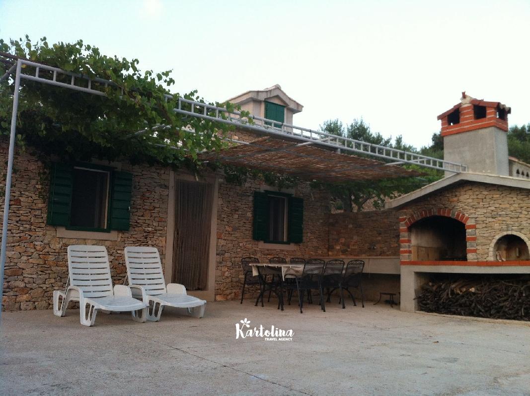 The house is located in the bay of Vela Lozna, about 4 km away from Postira and 600 m from the sea. From the main road to the house leads a dirt road. Electricity is provided by solar cells and it is not intended for high consumption. Hot water is obtained from a boiler heated by solar energy. In front of the house there is a fireplace and private parking.