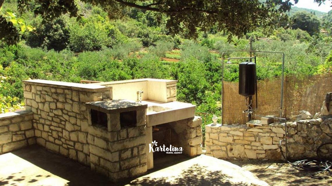 The house is about 200 m away from the beach, accessible by dirt road. It is located in private field surrounded by garden with seasonal fruits.
