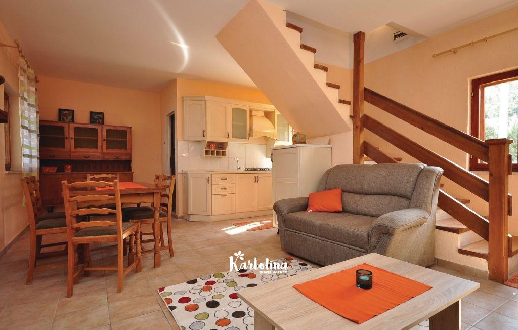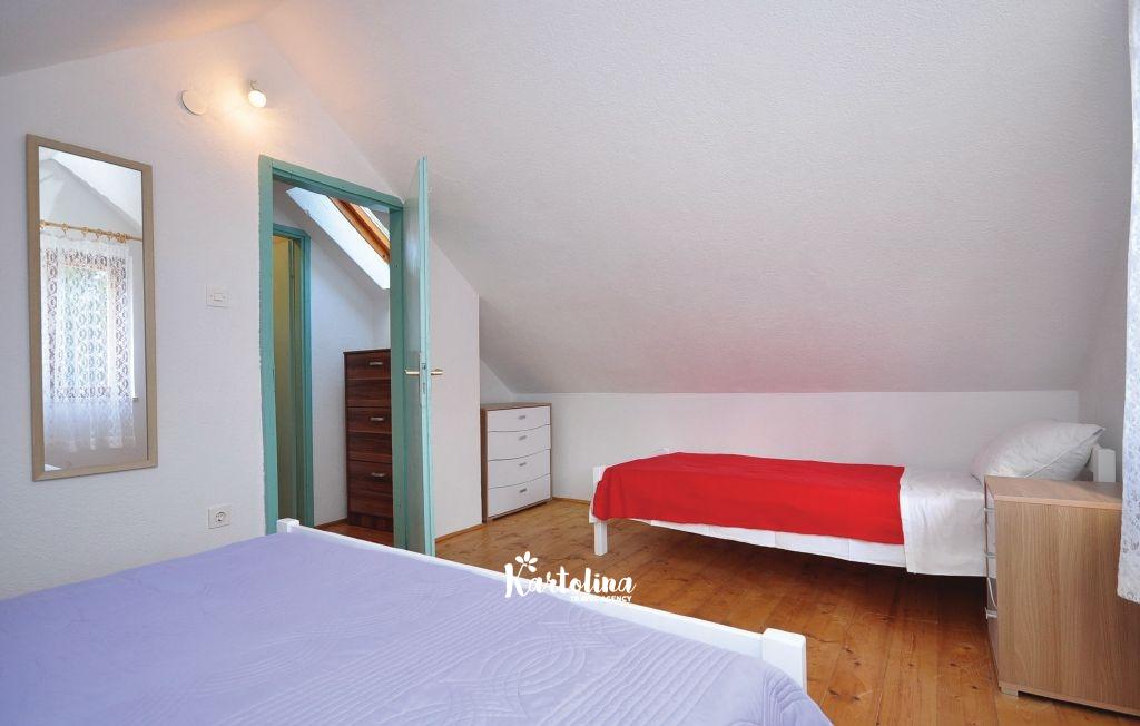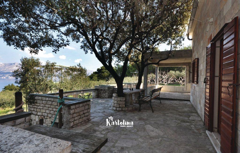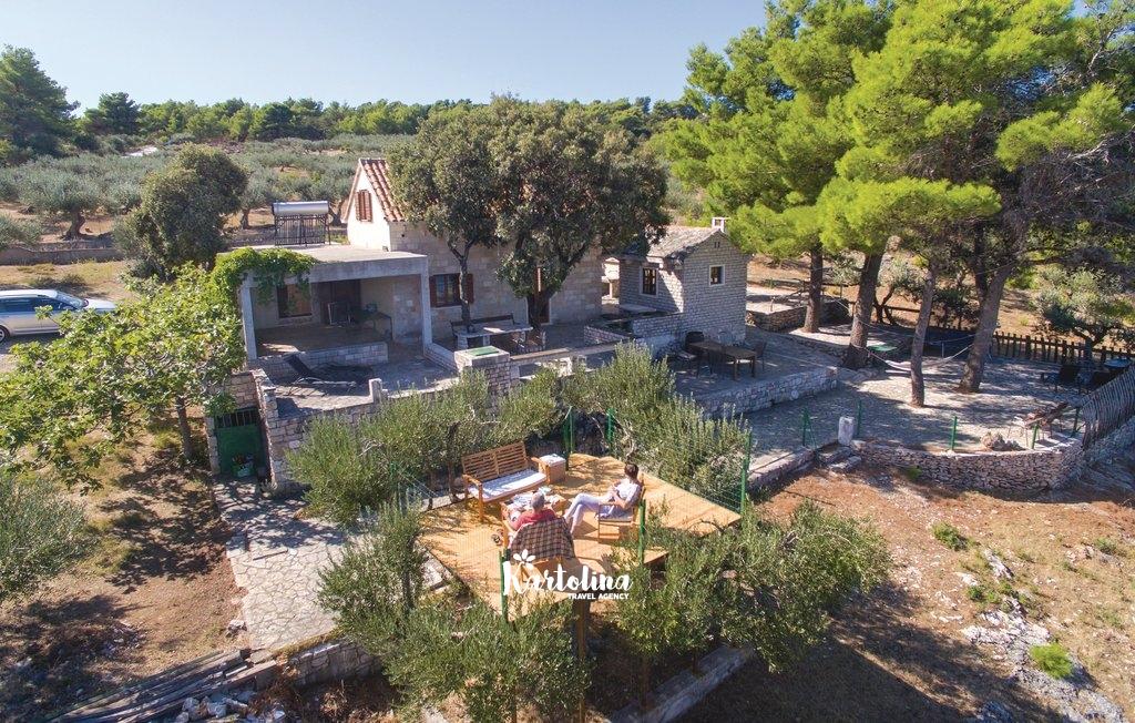 The house is located in Dučac bay, only 6 km away from Postira. Situated in a family field surrounded by olive groves, it is an ideal place to rest in the shade and quiet during summer heat. In front of the house there is private parking space and a spacious yard with barbecue and trampoline for children with a beautiful view of the sea and mountains.
