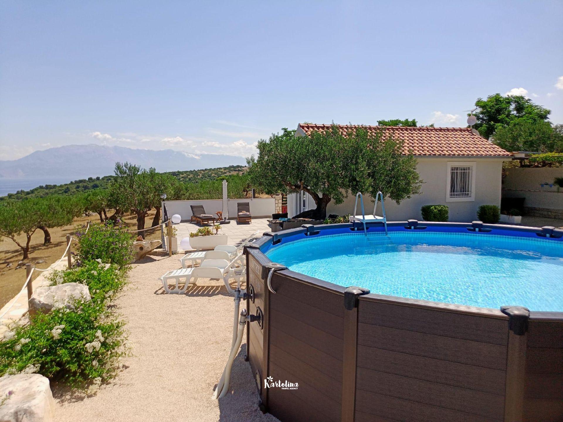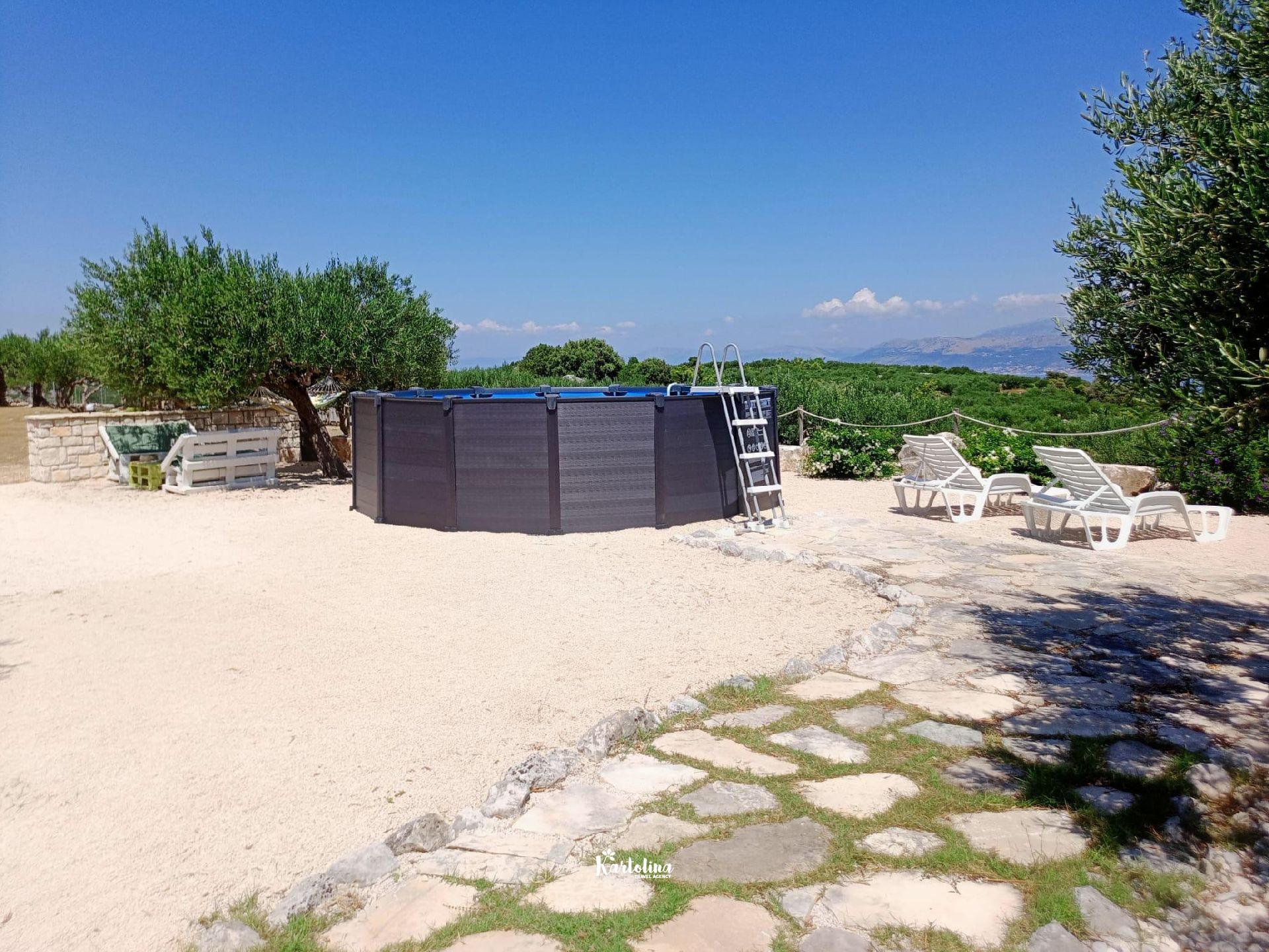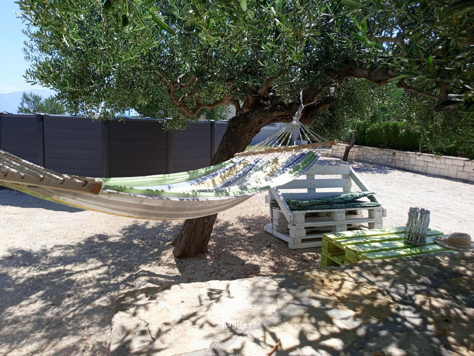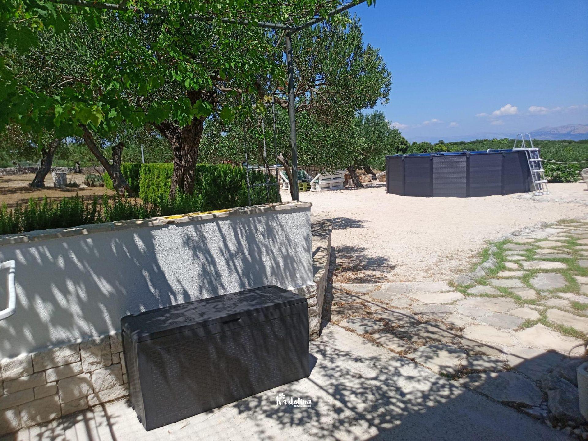 The house is located in family olive grove in the area of Dučac and leads to it a well-maintained macadam road of 700 m. It is surrounded by nature and offers a unique view of the sea and the surrounding mountains. In the yard there is a swimming pool, barbecue, table tennis. Private parking is available in front of the house.