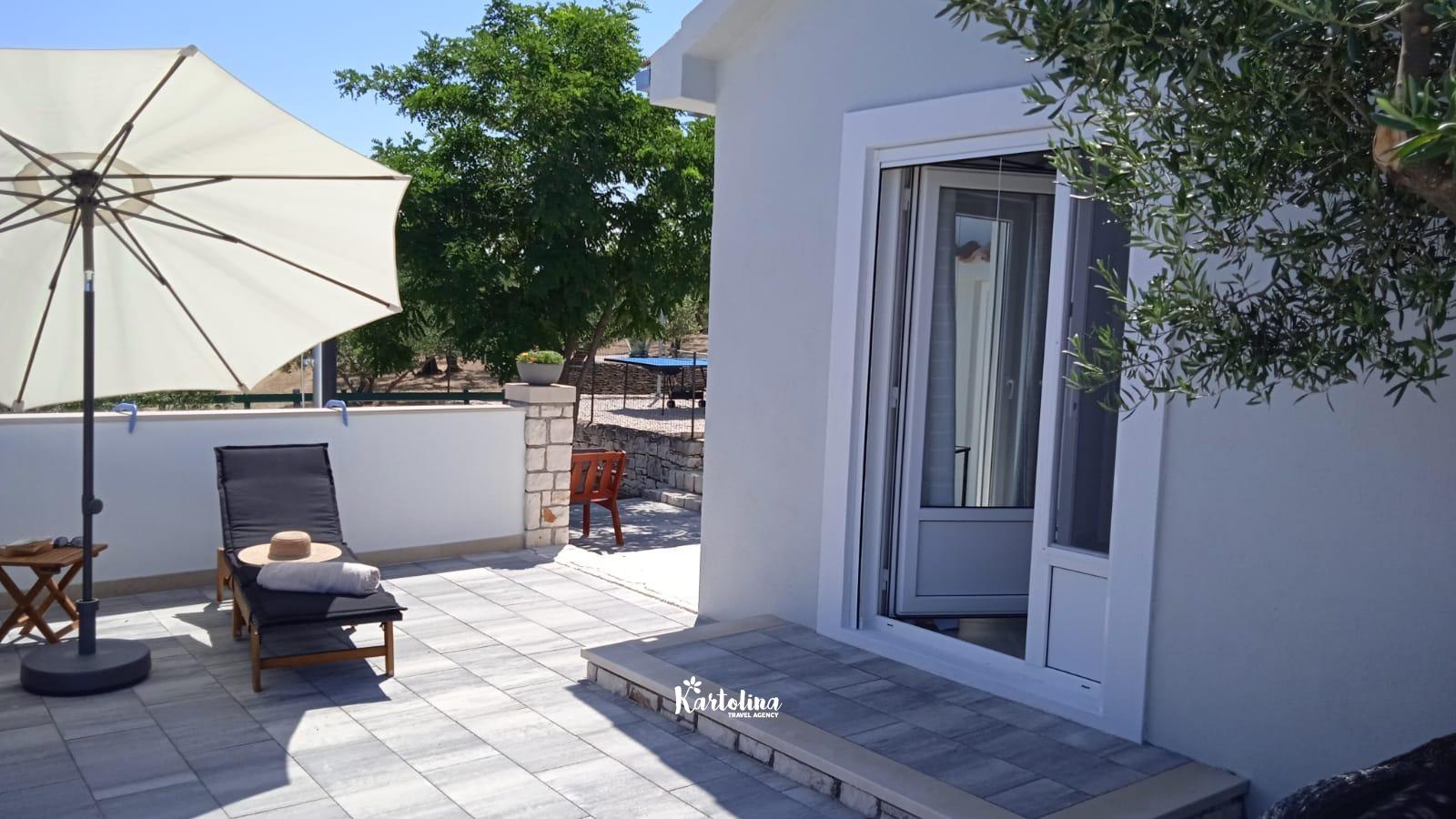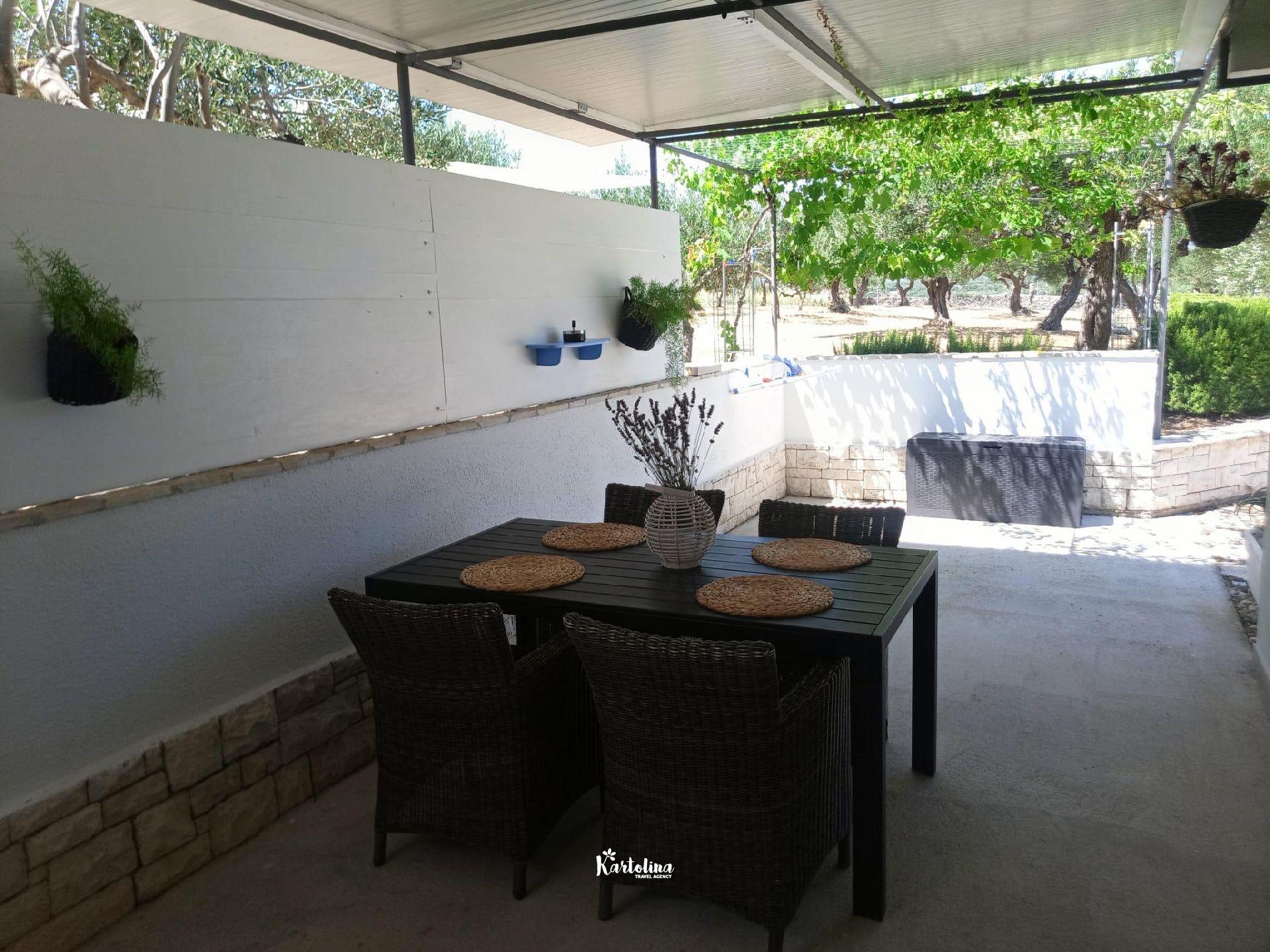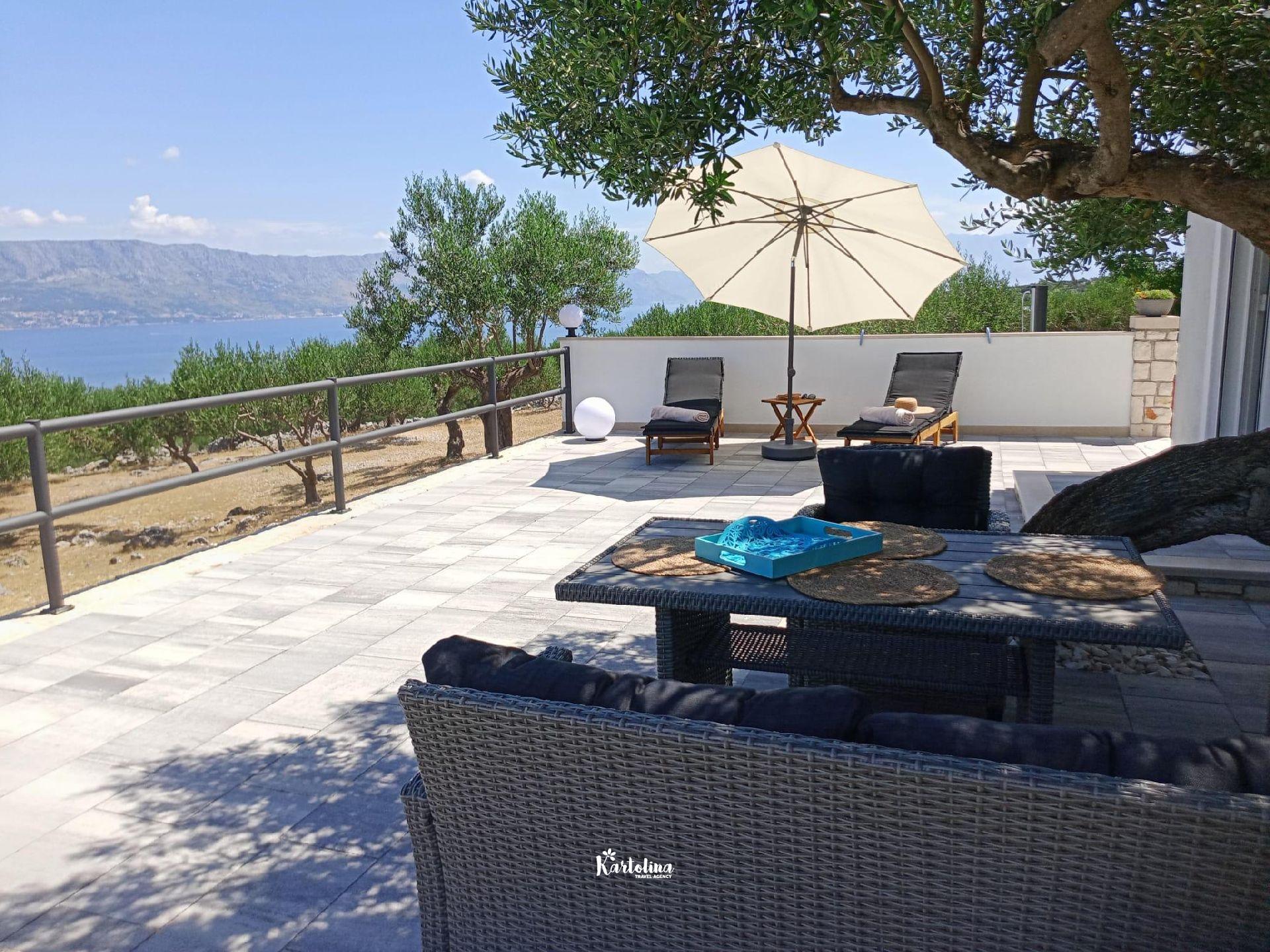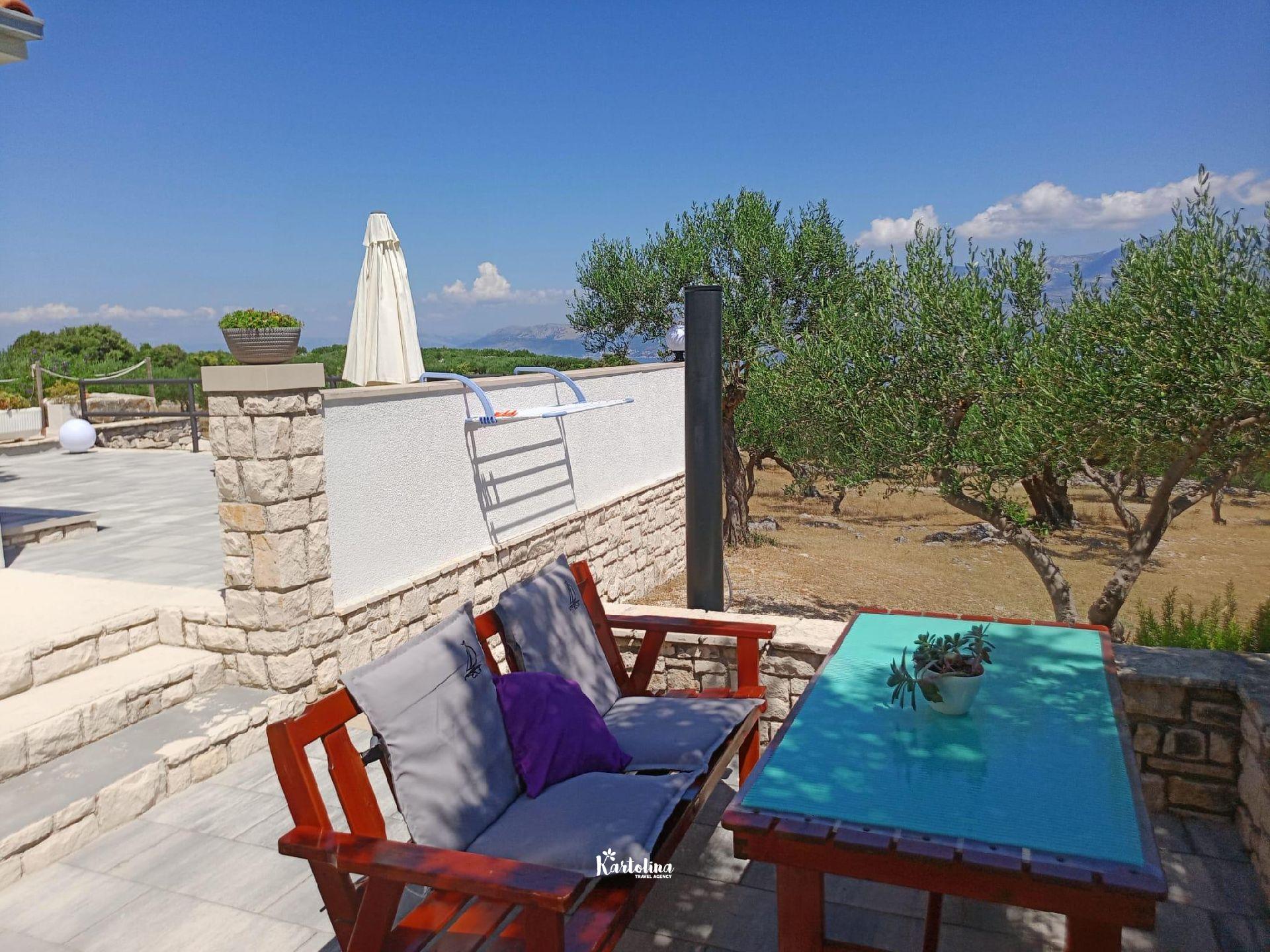 The house is located in family olive grove in the area of Dučac and leads to it a well-maintained macadam road of 700 m. It is surrounded by nature and offers a unique view of the sea and the surrounding mountains. In the yard there is a swimming pool, barbecue, table tennis. Private parking is available in front of the house.