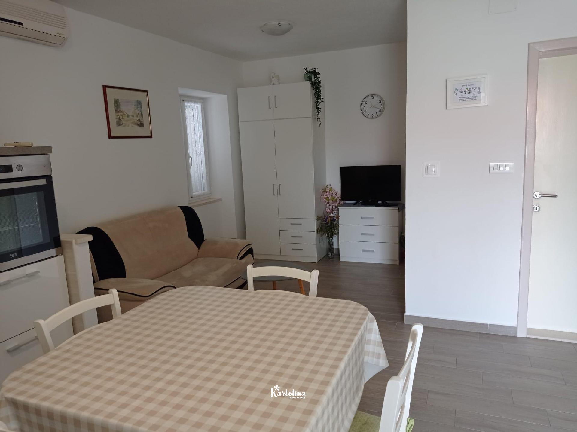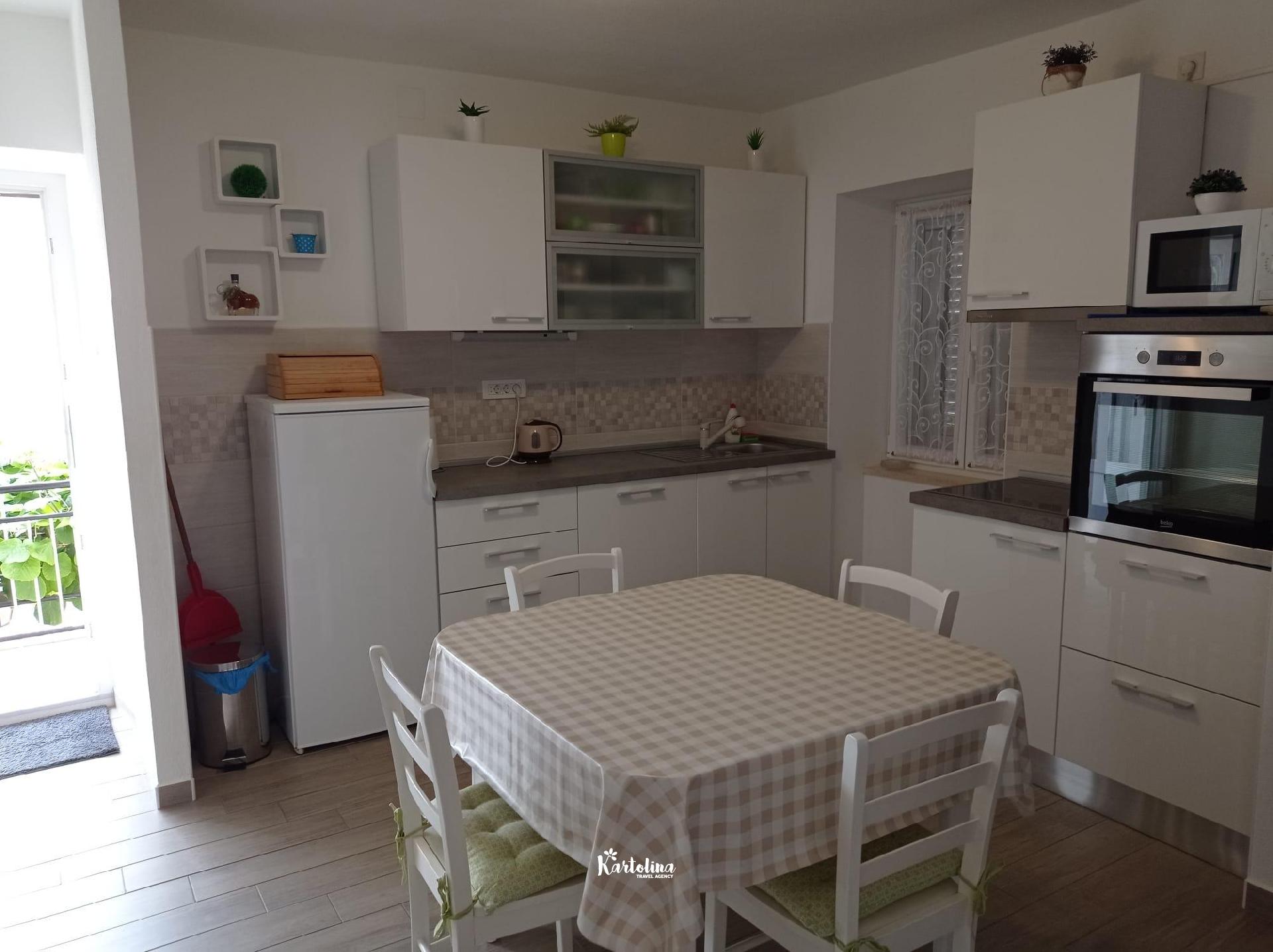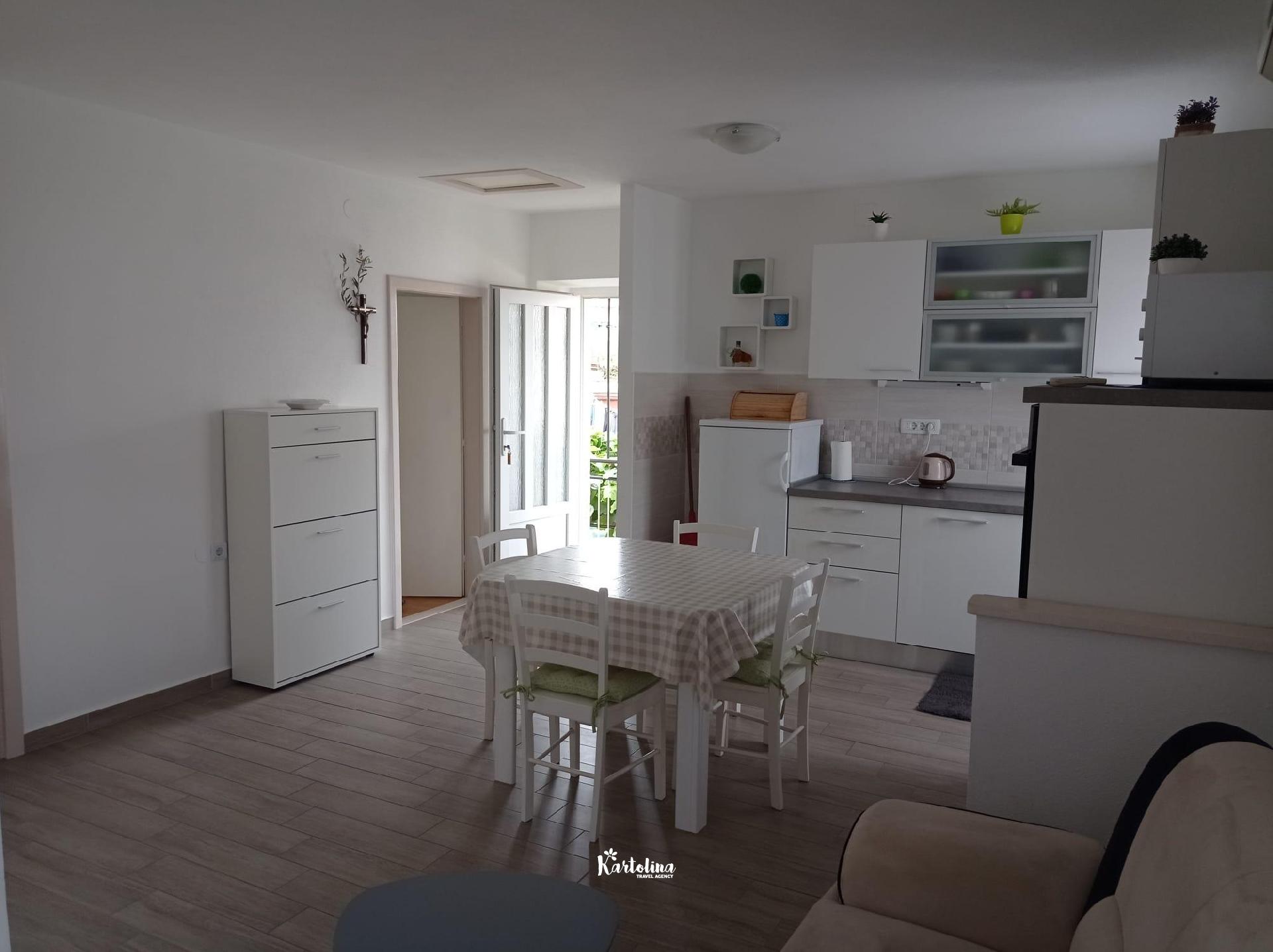 The apartment is located in a family house in a very attractive location, away from the center about 250 m and the sea 50 m. The nearest pebble beach is less than 100 m away. There are also shops and restaurants nearby.