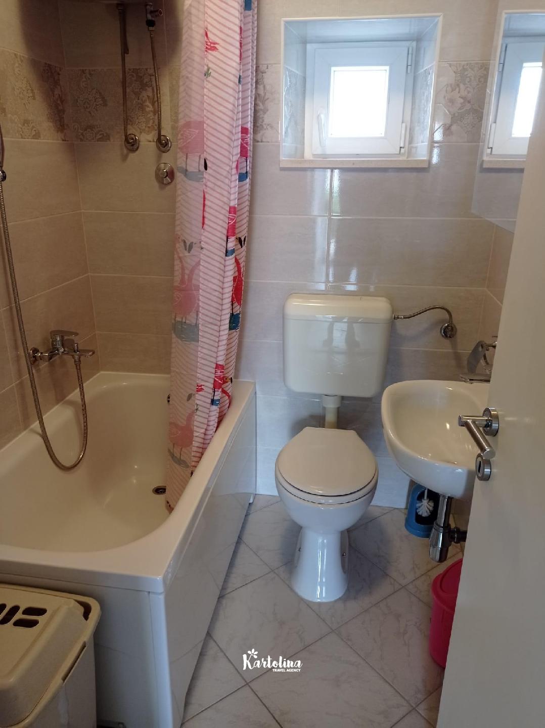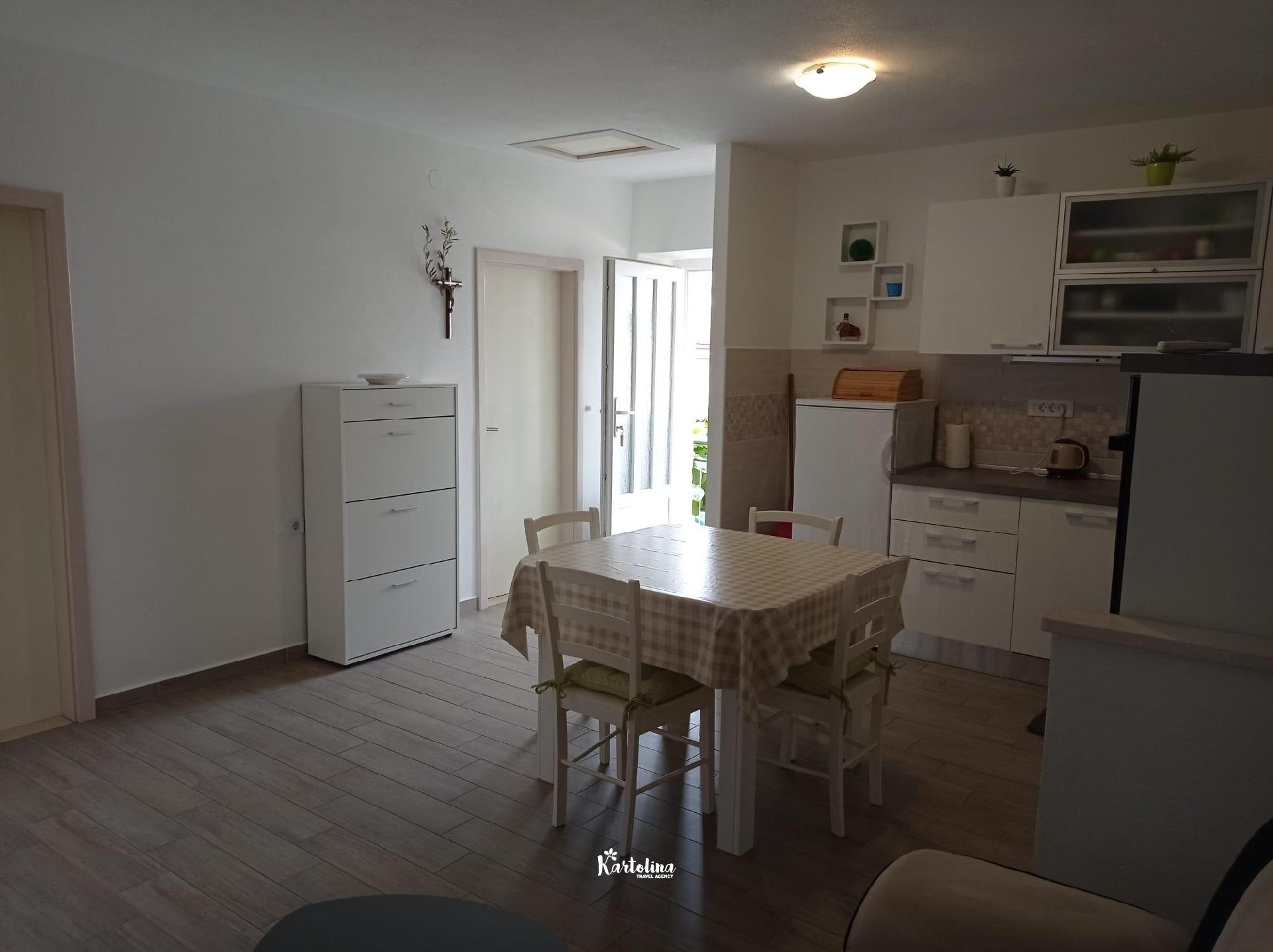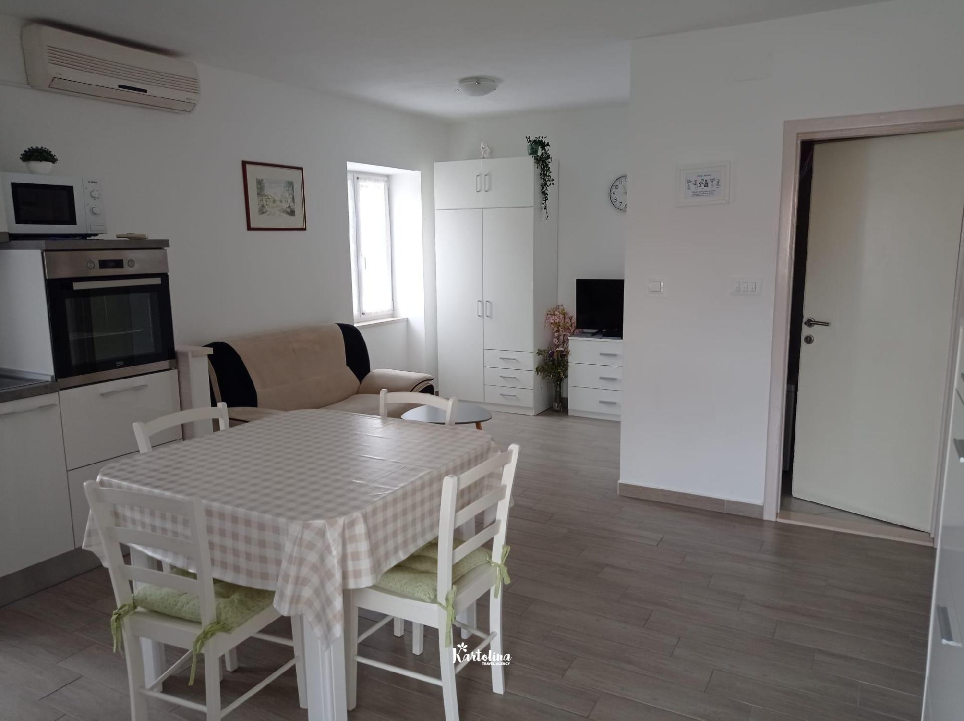 The apartment is located in a family house in a very attractive location, away from the center about 250 m and the sea 50 m. The nearest pebble beach is less than 100 m away. There are also shops and restaurants nearby.