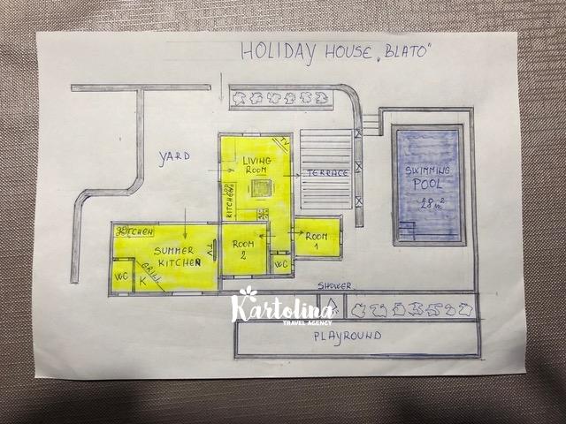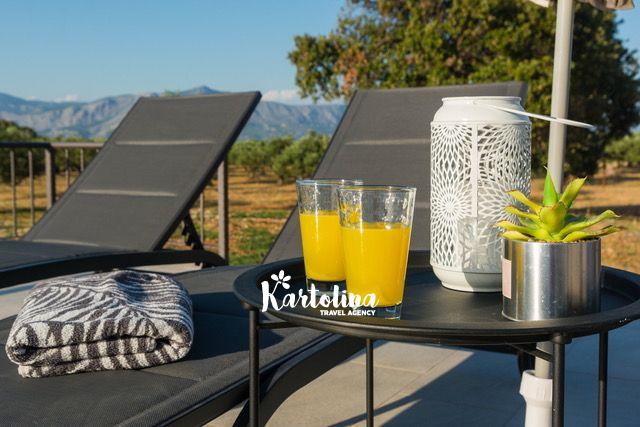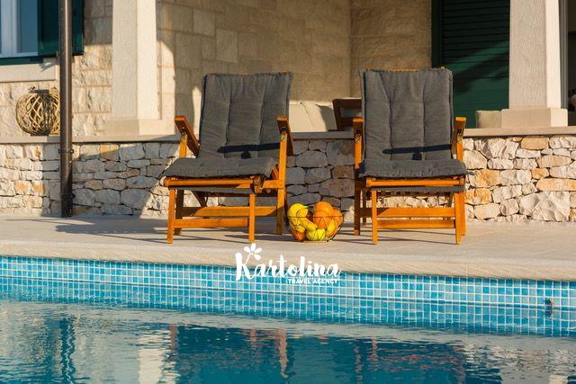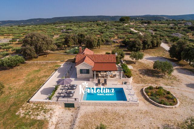 The house is located among the trees that provide pleasant shade, and the terrace offers a beautiful view of the Brac channel and the coast from Split to Omis.