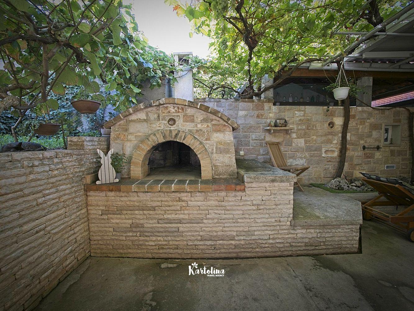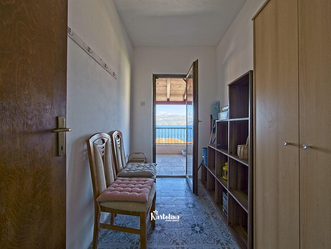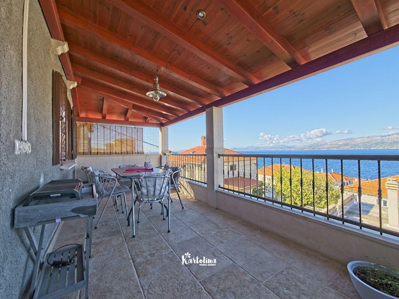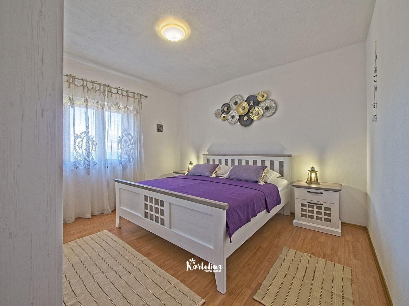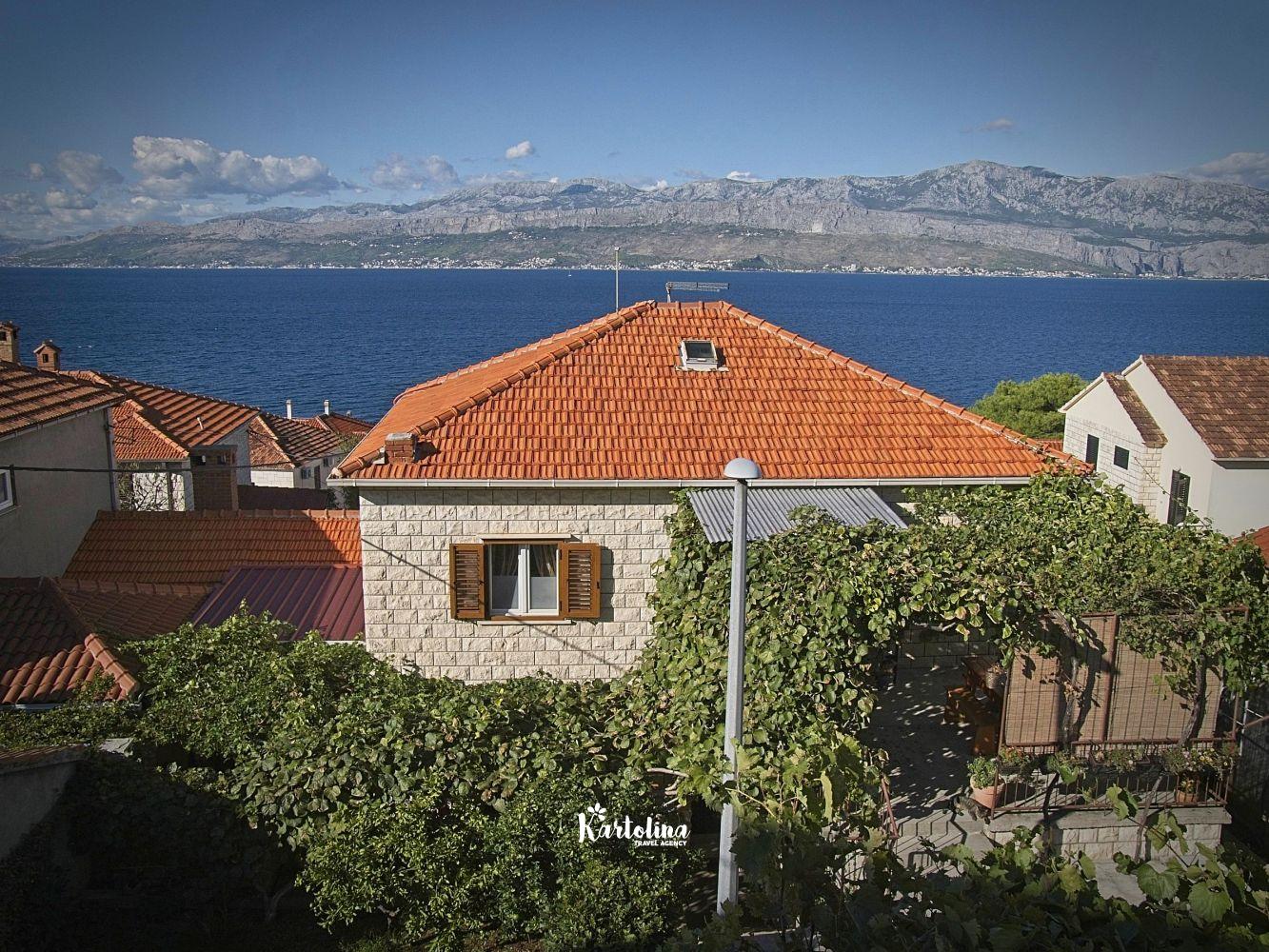 This cozy apartment has 3 bedrooms and it can accommodate 7 guests. When you enter it is actually located on the ground floor but from the terrace it seems like first floor. It has a great sea view and you can enjoy sitting in shadow. It is surrounded by garden and yard with open grill.
