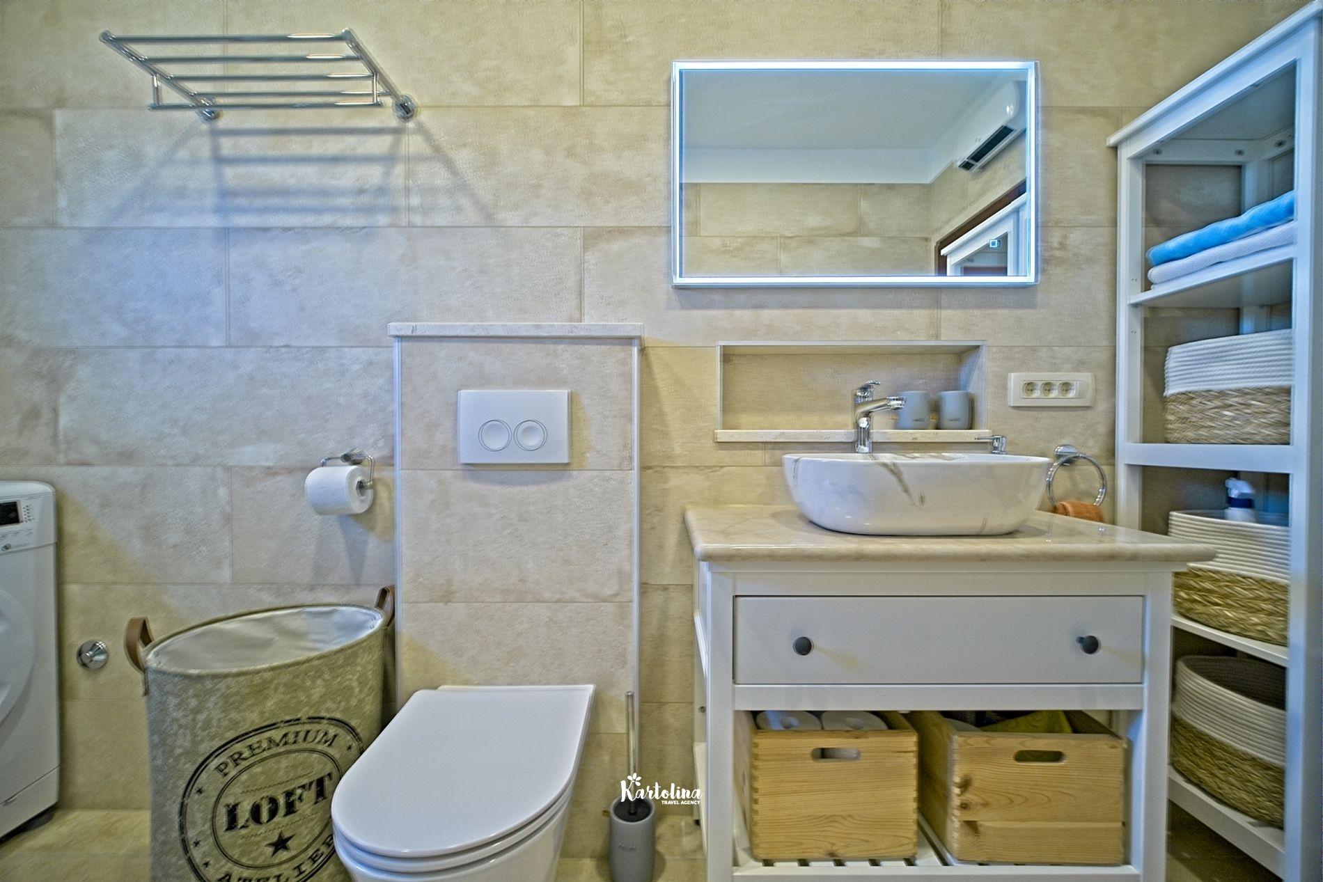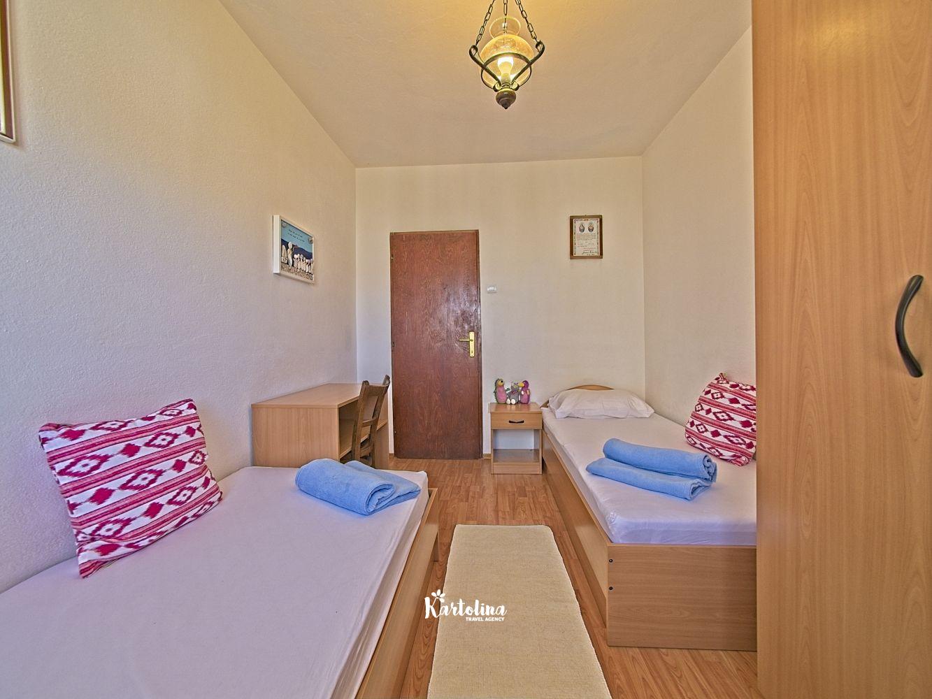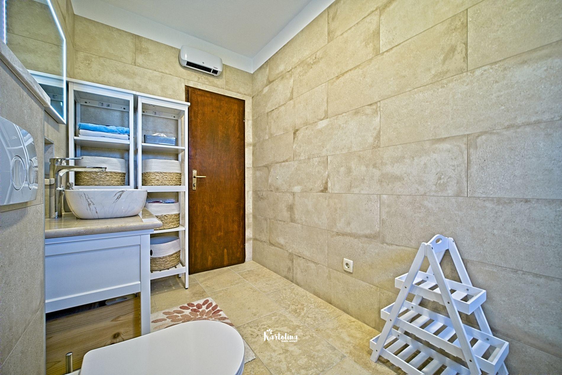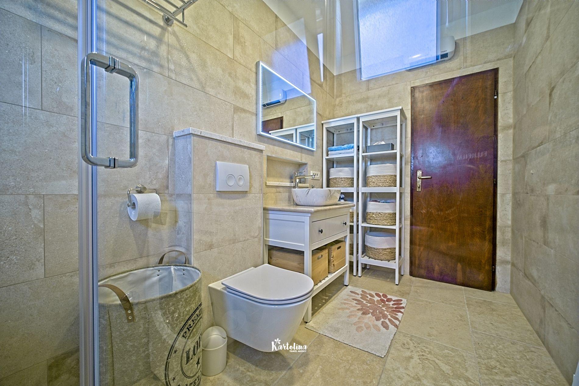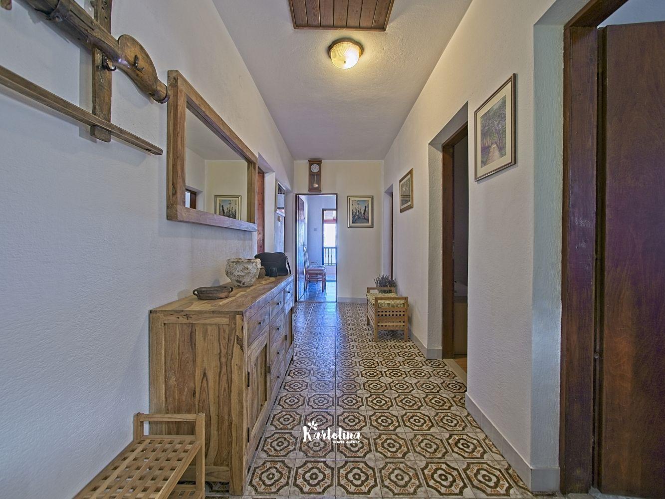 This cozy apartment has 3 bedrooms and it can accommodate 7 guests. When you enter it is actually located on the ground floor but from the terrace it seems like first floor. It has a great sea view and you can enjoy sitting in shadow. It is surrounded by garden and yard with open grill.