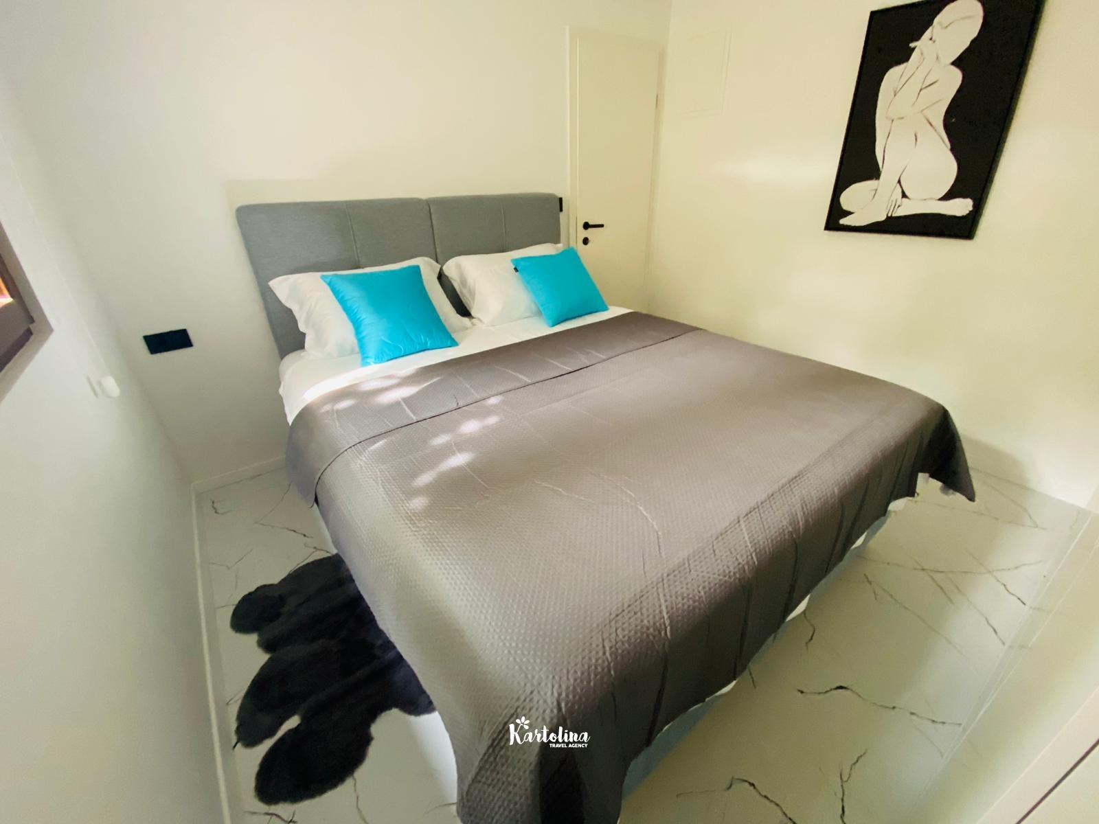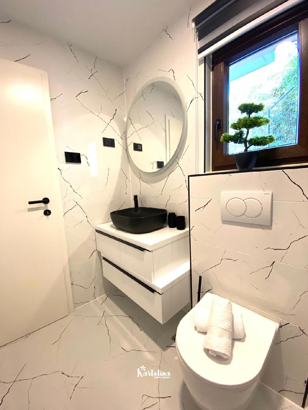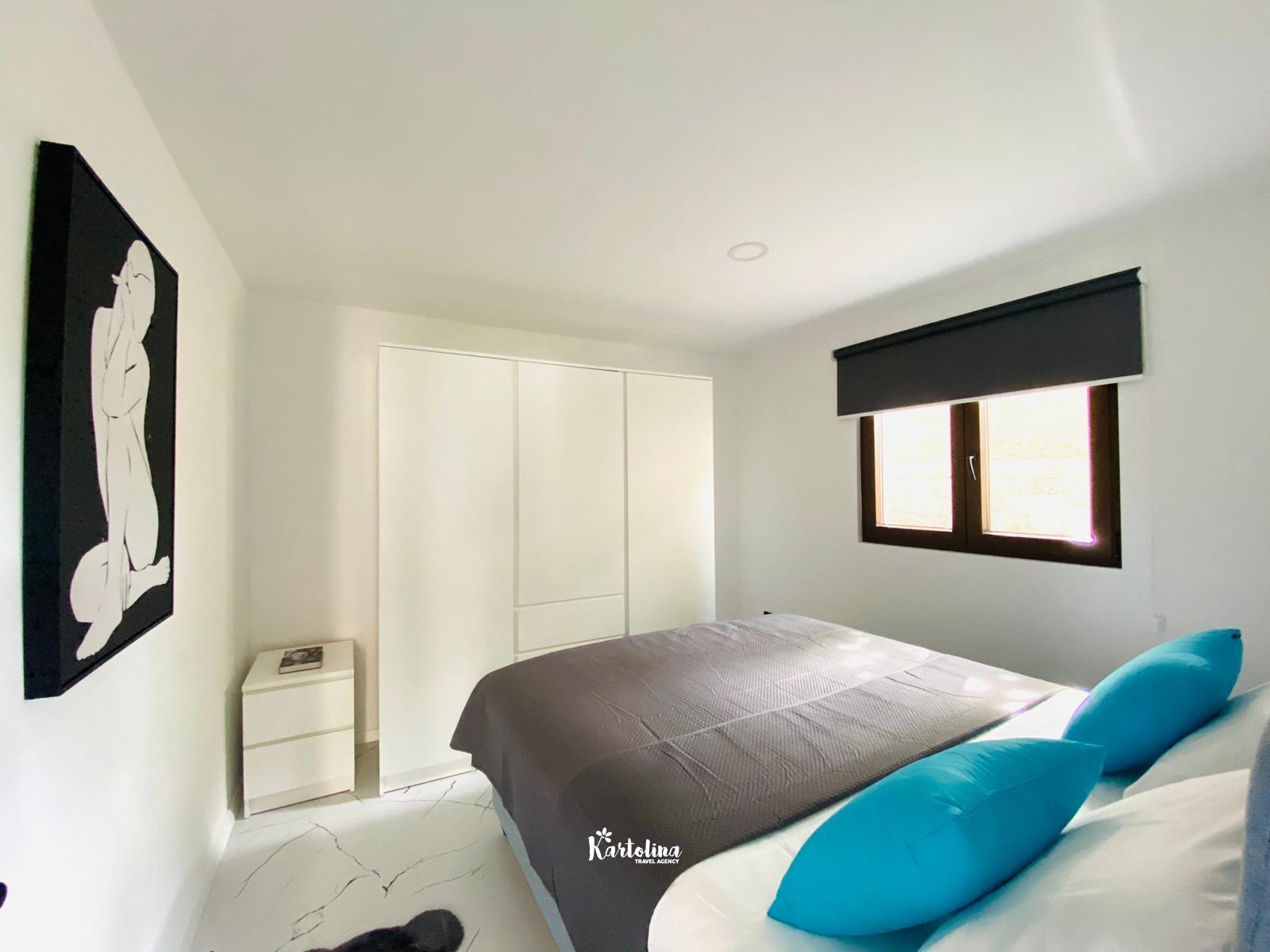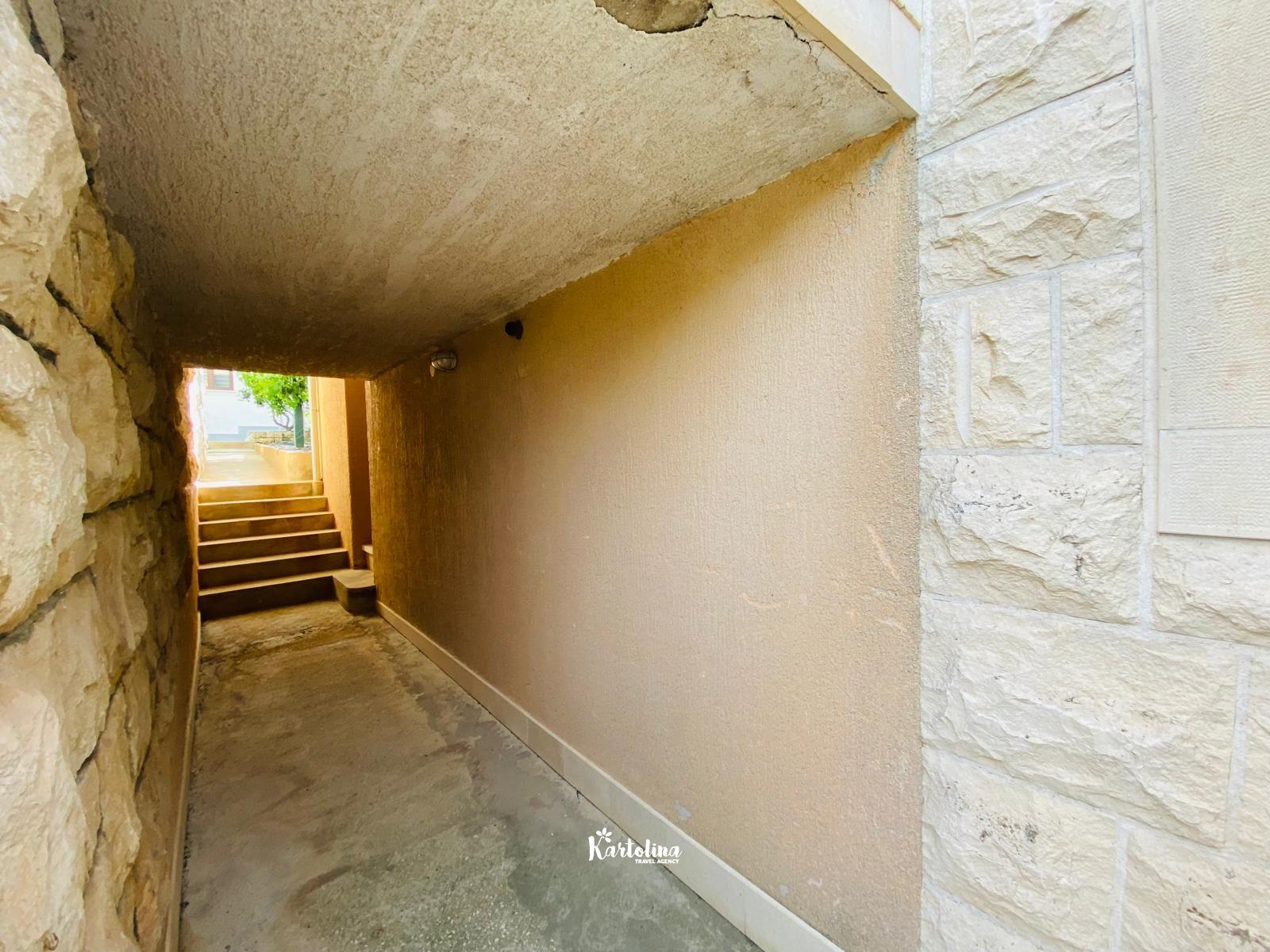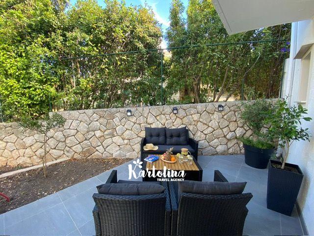 The apartment is located in the wider center of the town on the ground floor of a family house. In front of the apartment is a small yard with a seating area and a garden, and to the apartment leads a way through a common yard.
