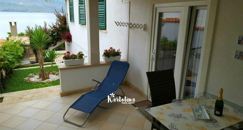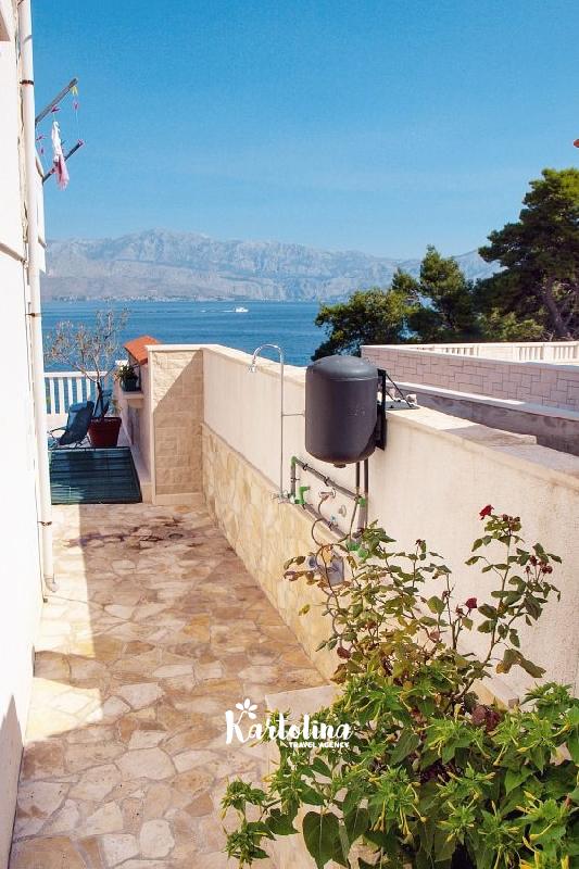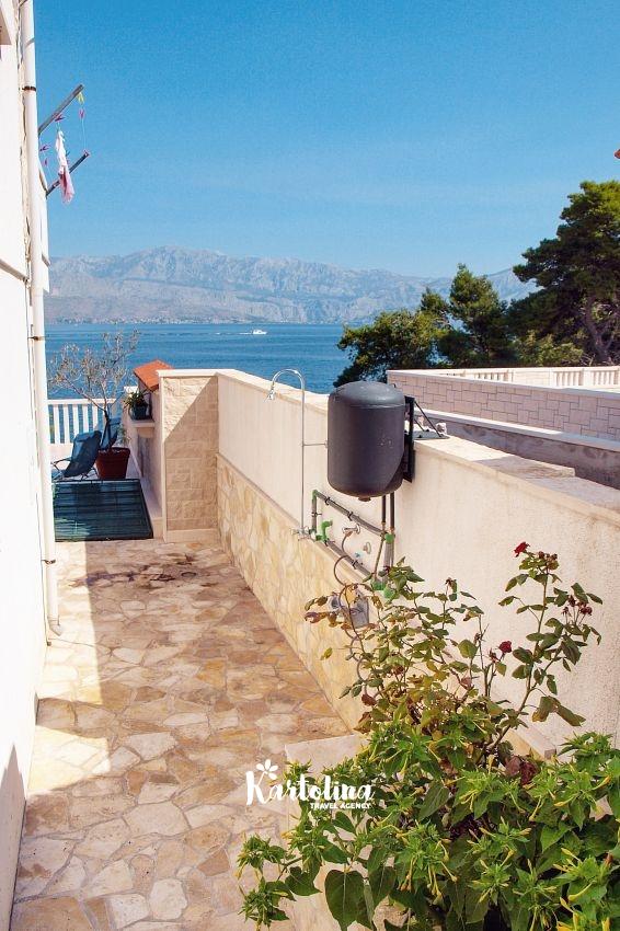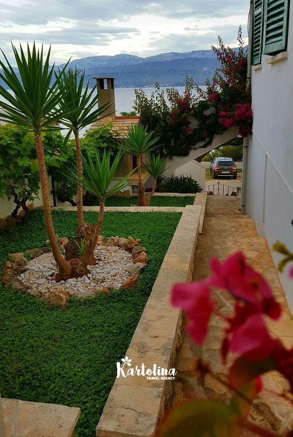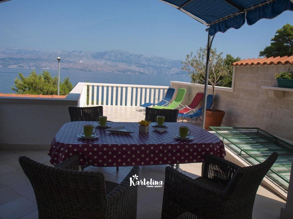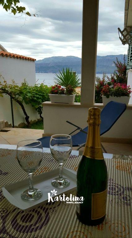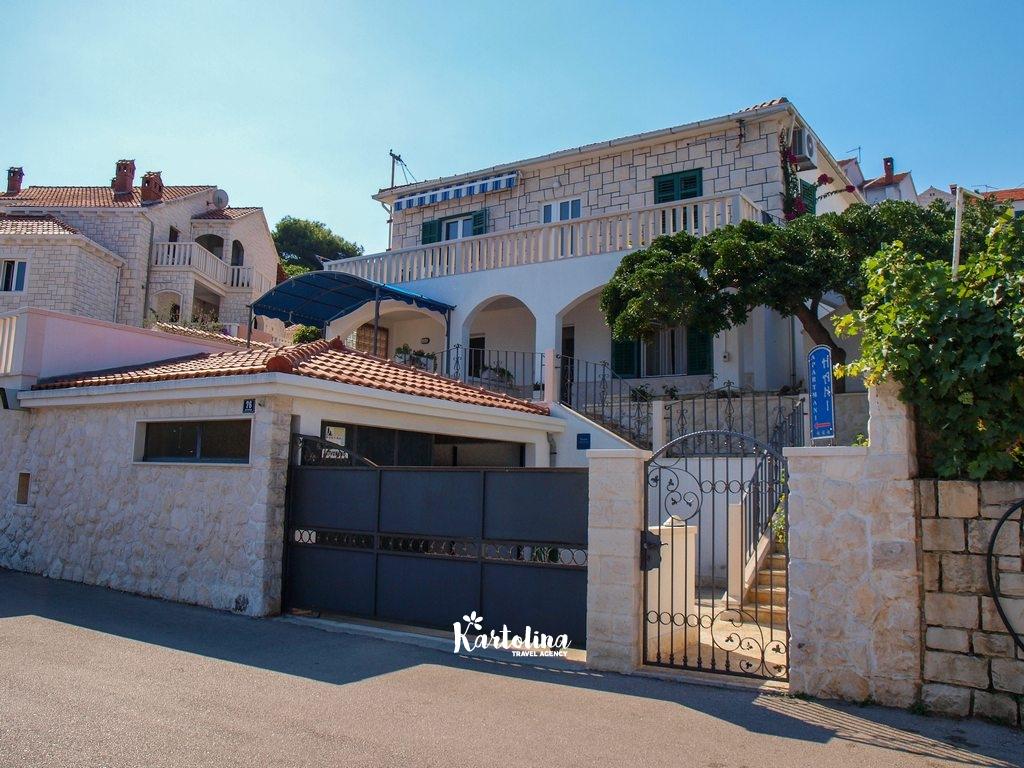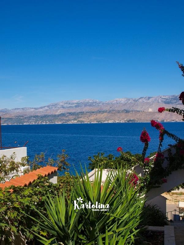 Apartmani su smješteni u obiteljskoj kući na veoma atraktivnoj lokaciji, odmah iznad stjenovite ali pristupačne plaže. Osigurano je jedno privatno parkirno mjesto a ispred kuće dostupan je besplatni javni parking. U dvorištu se nalaze roštilj i vanjski tuš a gosti naročito uživaju u sunčanju na prostranoj terasi sa prekrasnim pogledom na more i Brački kanal.