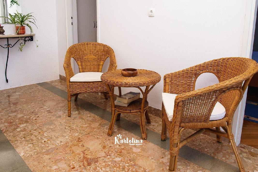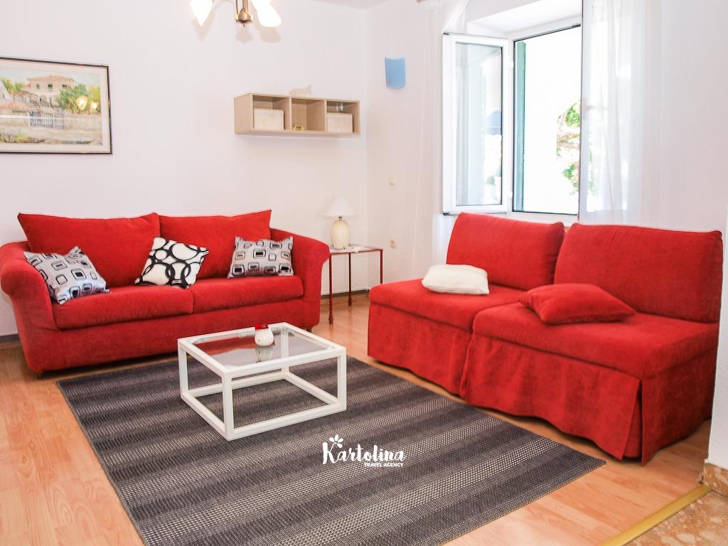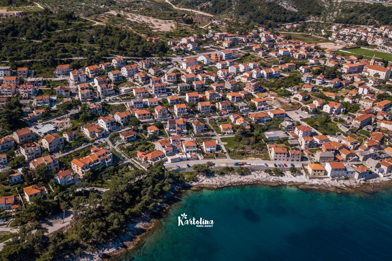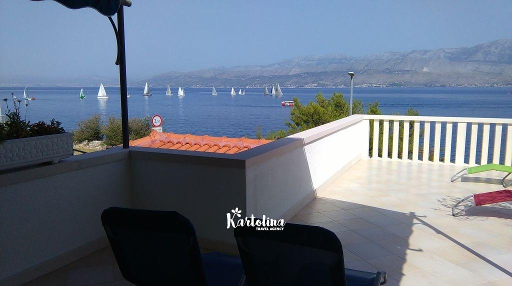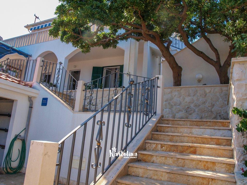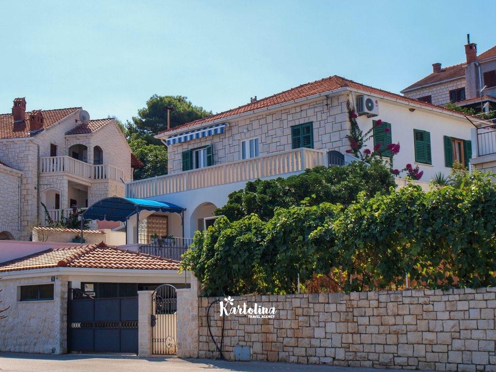 Apartmani su smješteni u obiteljskoj kući na veoma atraktivnoj lokaciji, odmah iznad stjenovite ali pristupačne plaže. Osigurano je jedno privatno parkirno mjesto a ispred kuće dostupan je besplatni javni parking. U dvorištu se nalaze roštilj i vanjski tuš a gosti naročito uživaju u sunčanju na prostranoj terasi sa prekrasnim pogledom na more i Brački kanal.