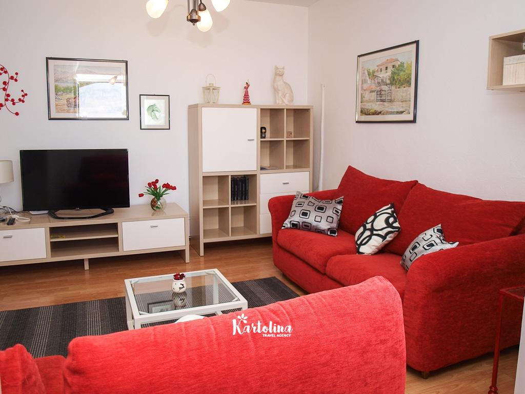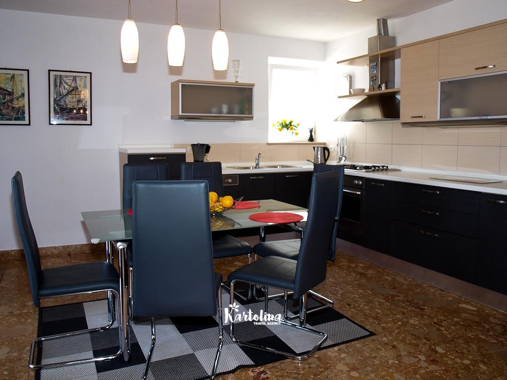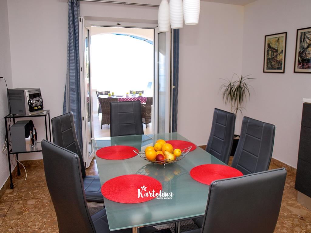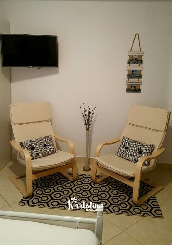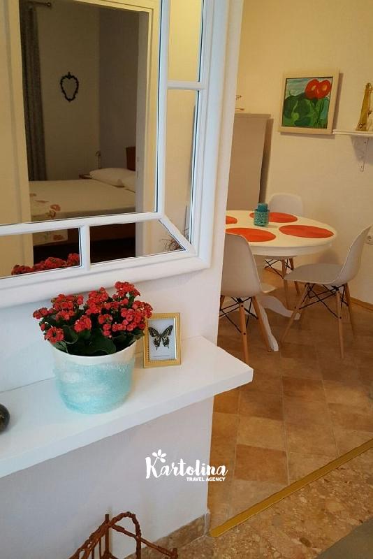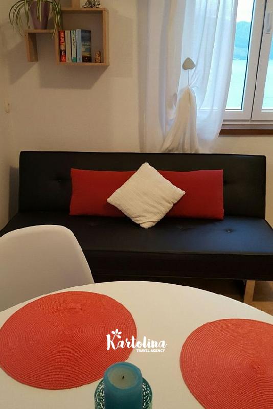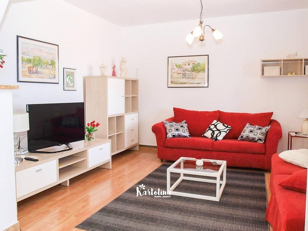 Apartmani su smješteni u obiteljskoj kući na veoma atraktivnoj lokaciji, odmah iznad stjenovite ali pristupačne plaže. Osigurano je jedno privatno parkirno mjesto a ispred kuće dostupan je besplatni javni parking. U dvorištu se nalaze roštilj i vanjski tuš a gosti naročito uživaju u sunčanju na prostranoj terasi sa prekrasnim pogledom na more i Brački kanal.