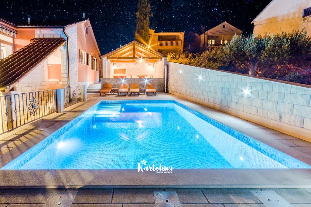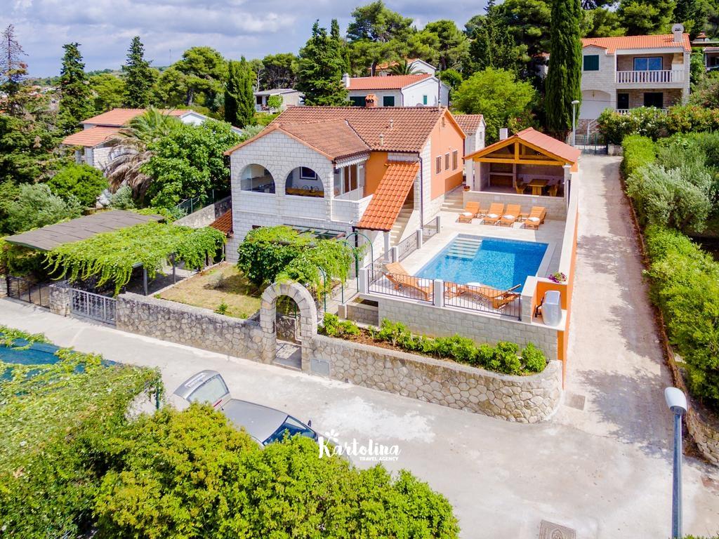 Ispred objekta nalaze se tri privatna parkirna mjesta. U dvorištu su dostupni natkriveni roštilj i veliki grijani bazen.