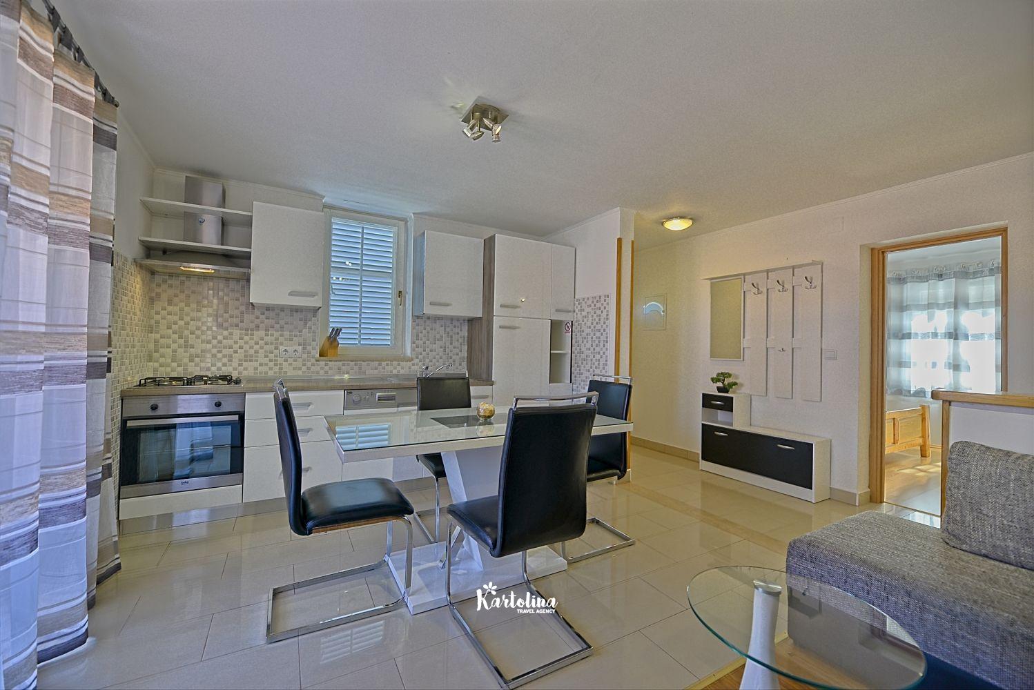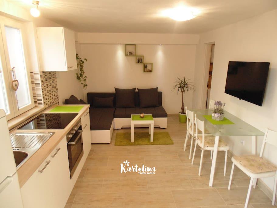Apartmani se nalaze u obiteljskoj kući u mirnom predjelu mjesta okruženi borovom šumom.