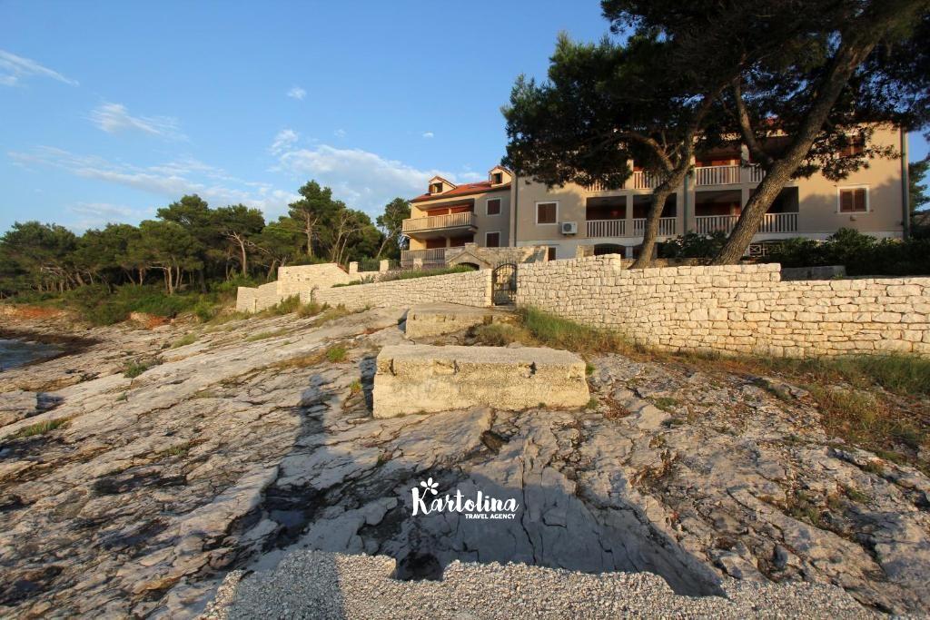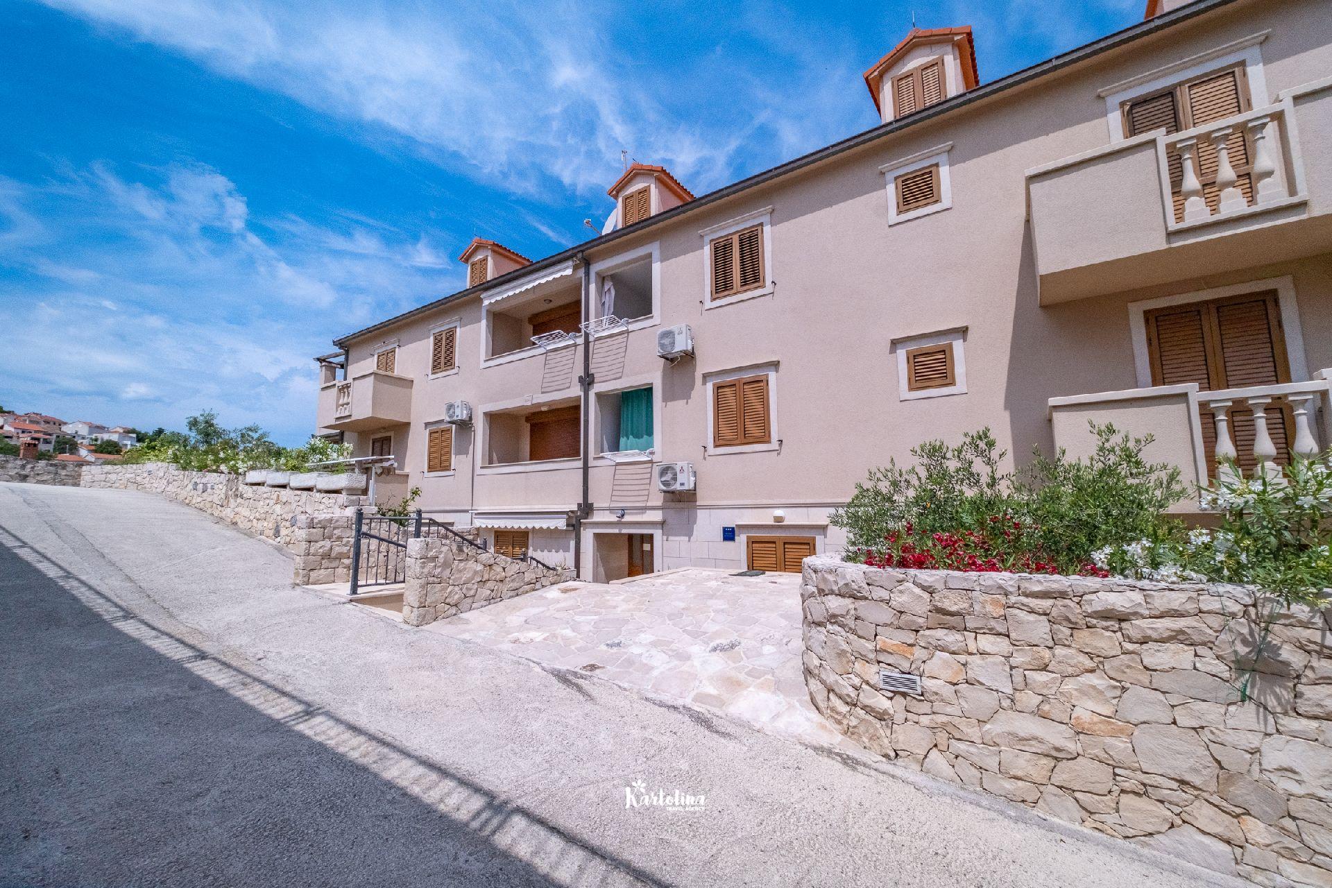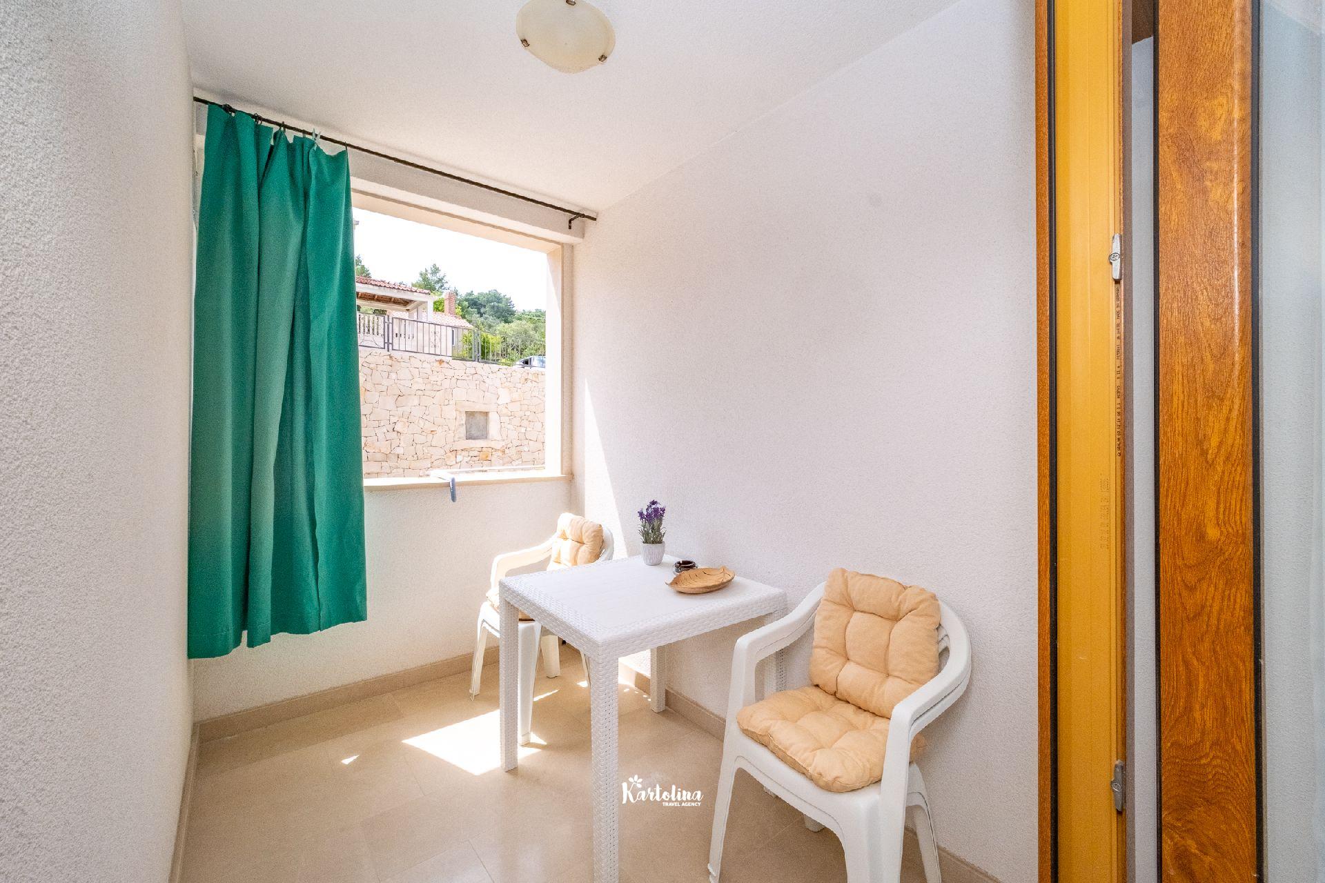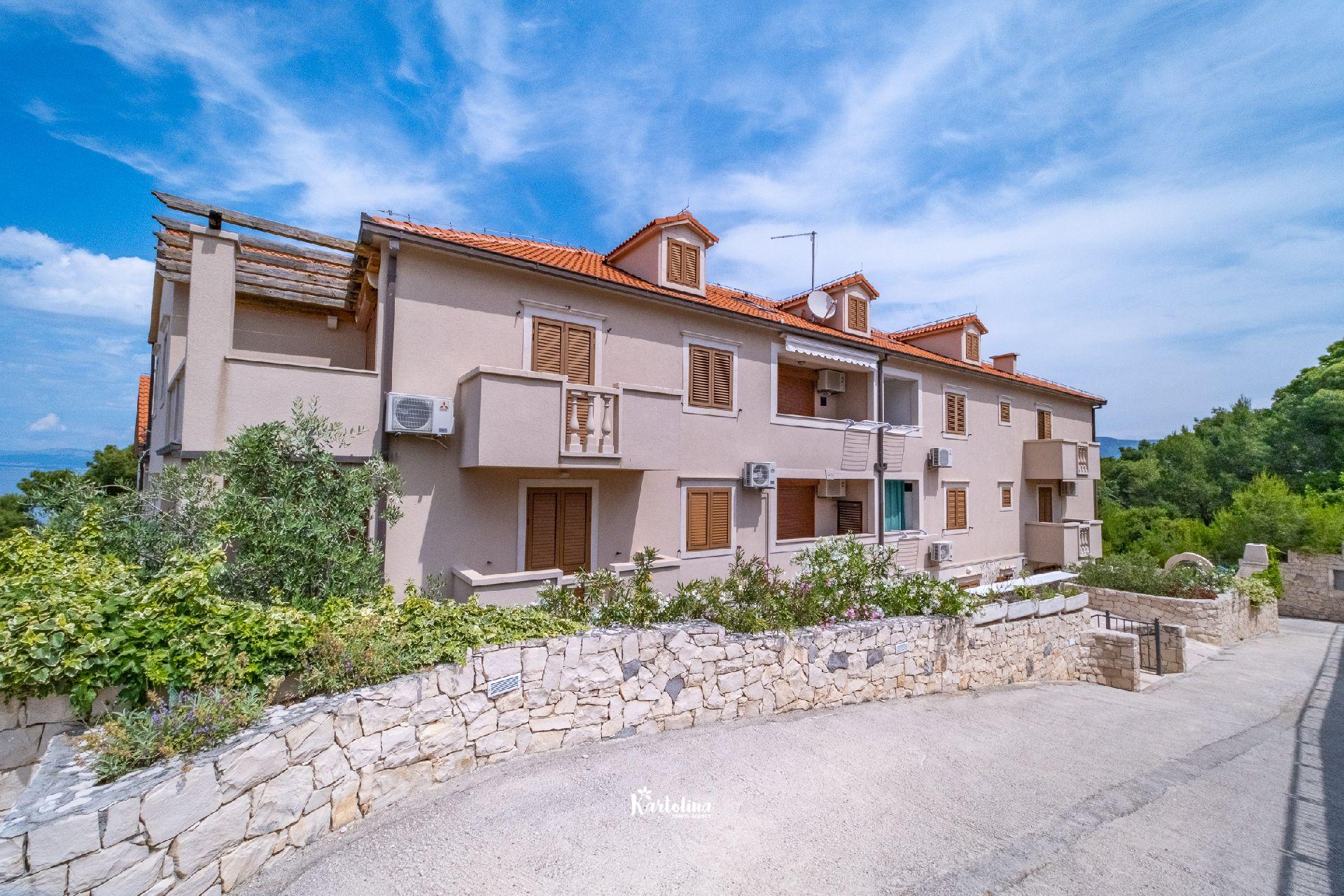 Apartman je smješten u mirnom predjelu na rubu mjesta u kući iznad stjenovite plaže. Iznad kuće nalazi se privatni parking. Centar mjesta udaljen je 1 km a najbliža šljunčana plaža oko 50 metara. U blizini se nalazi šetnica koja vodi do pješčane uvale Lovrečine. Kućni ljubimci su dobrodošli uz prethodni upit. Posteljina i ručnici uključeni su u cijenu smještaja.