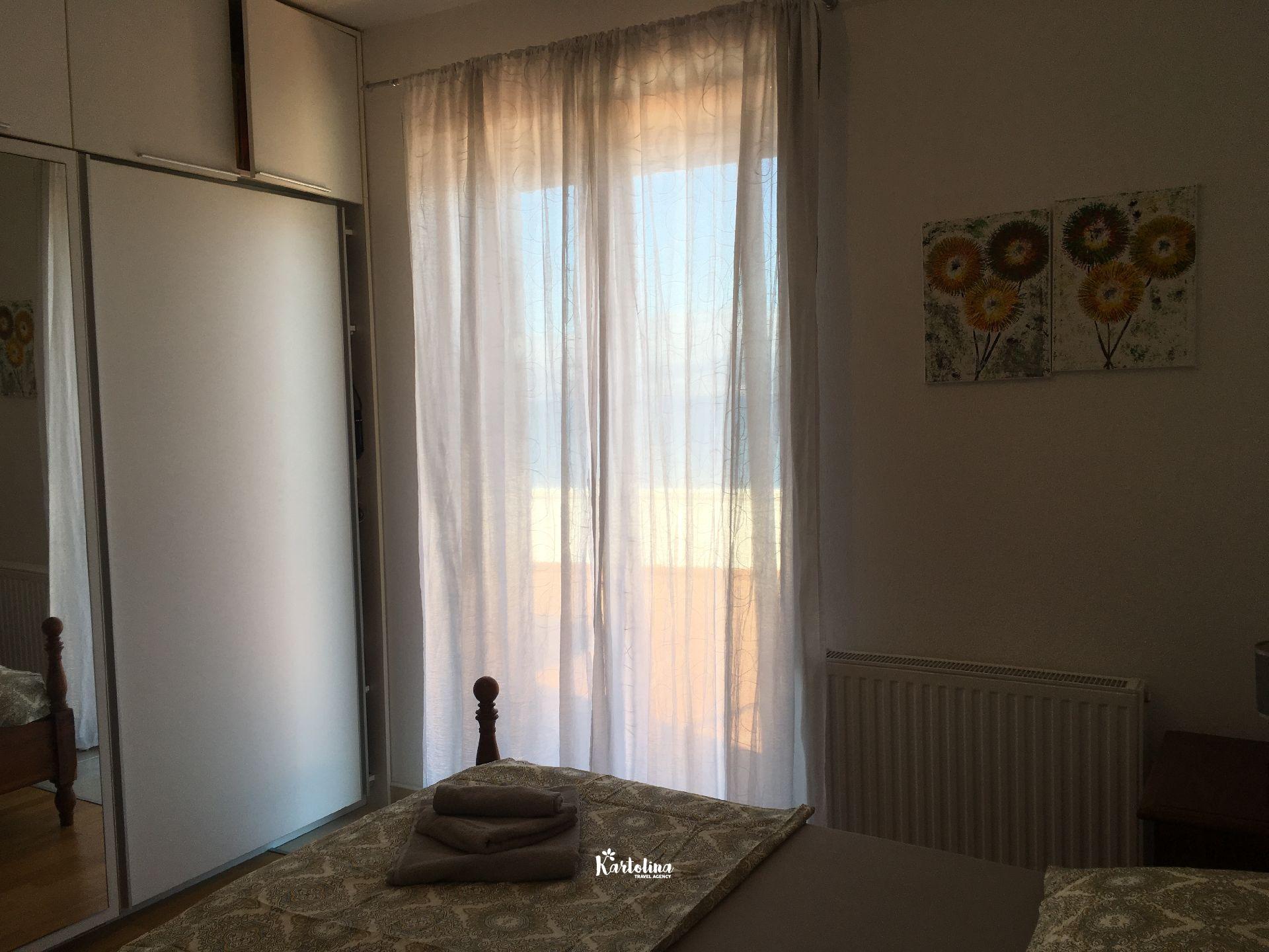 Apartman je smješten u obiteljskoj kući iznad šljunčane plaže. Sa terase se pruža prekrasan pogled na more i Brački kanal.